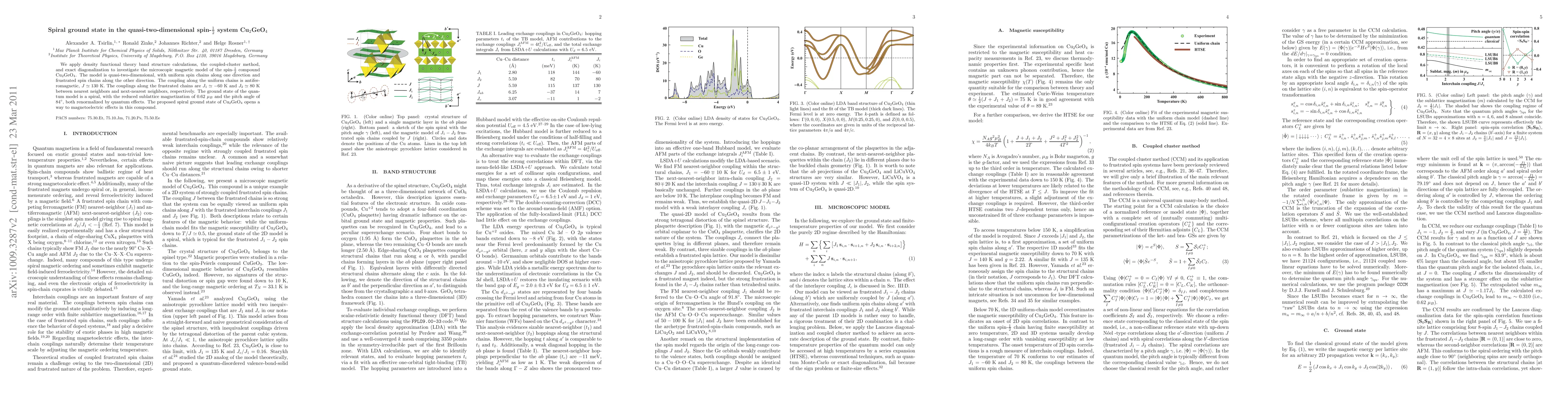Researchers found a spiral ground state in Cu2GeO4, a spin-1/2 compound with magnetic properties that could lead to magnetoelectric effects. The spiral state has a specific pitch angle and reduced sublattice magnetization.