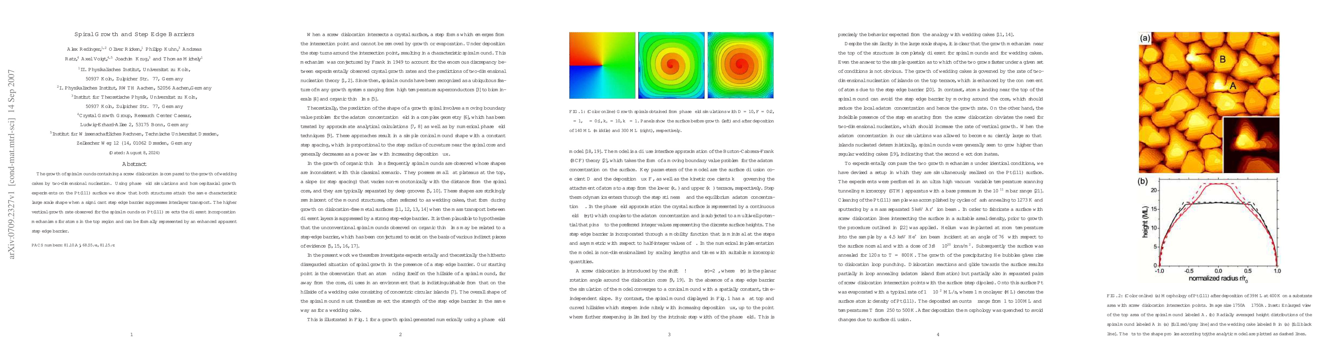 Researchers used simulations and experiments to show that spiral mounds and wedding cakes grow similarly when a step edge barrier suppresses interlayer transport. This leads to the same large-scale shape in both structures.