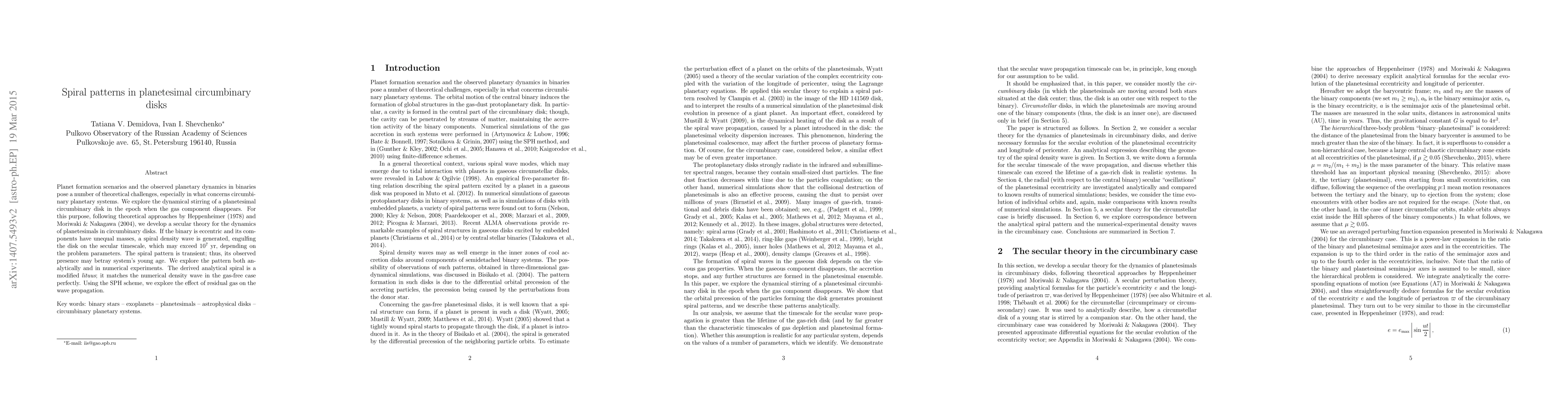 Researchers developed a secular theory for planetesimal dynamics in circumbinary disks, finding that spiral density waves can form due to binary eccentricity, which may indicate young system ages.