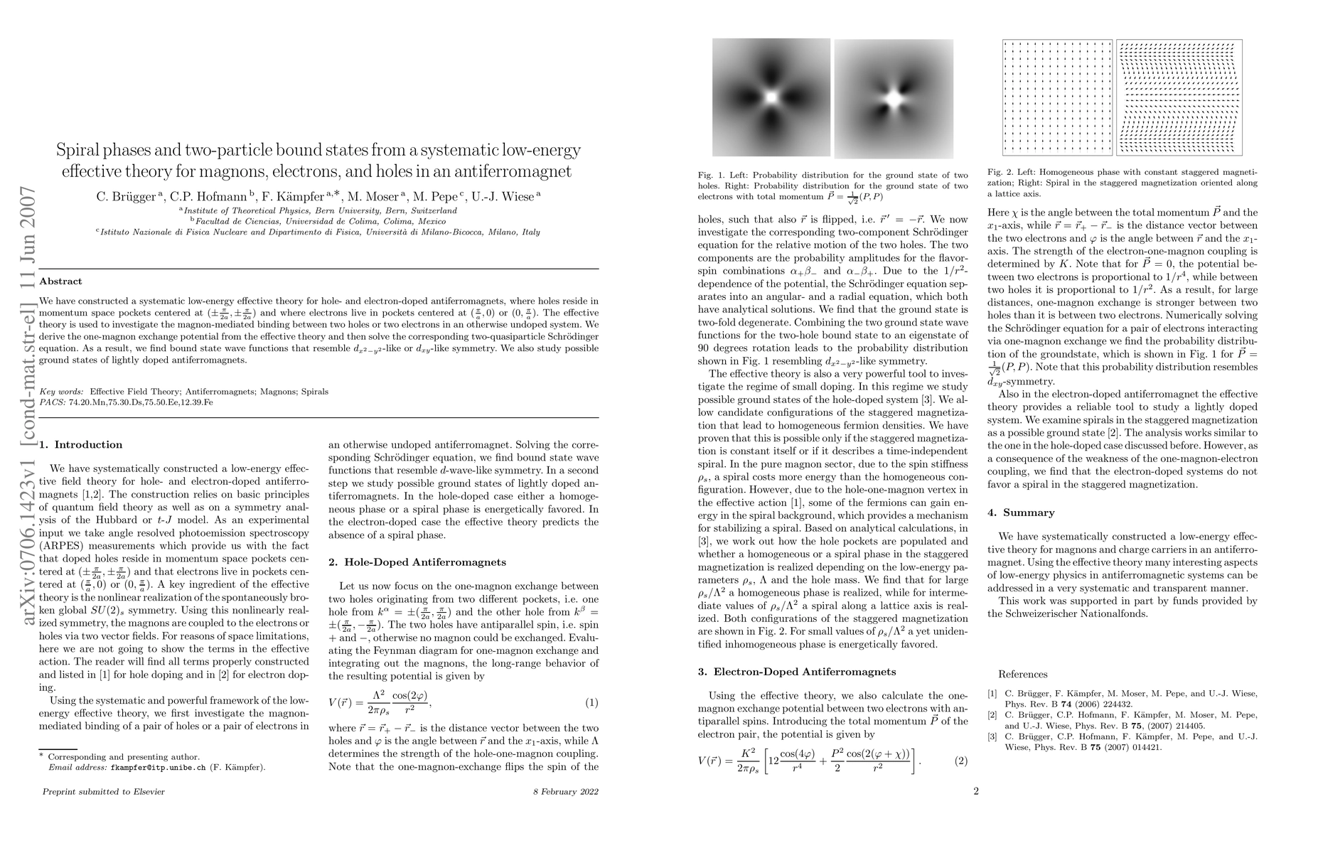 This paper constructs a low-energy effective theory for magnons, electrons, and holes in antiferromagnets, revealing magnon-mediated binding between two holes or two electrons. The derived one-magnon exchange potential leads to $d_{x^2-y^2}$-like or $d_{xy}$-like bound state wave functions.