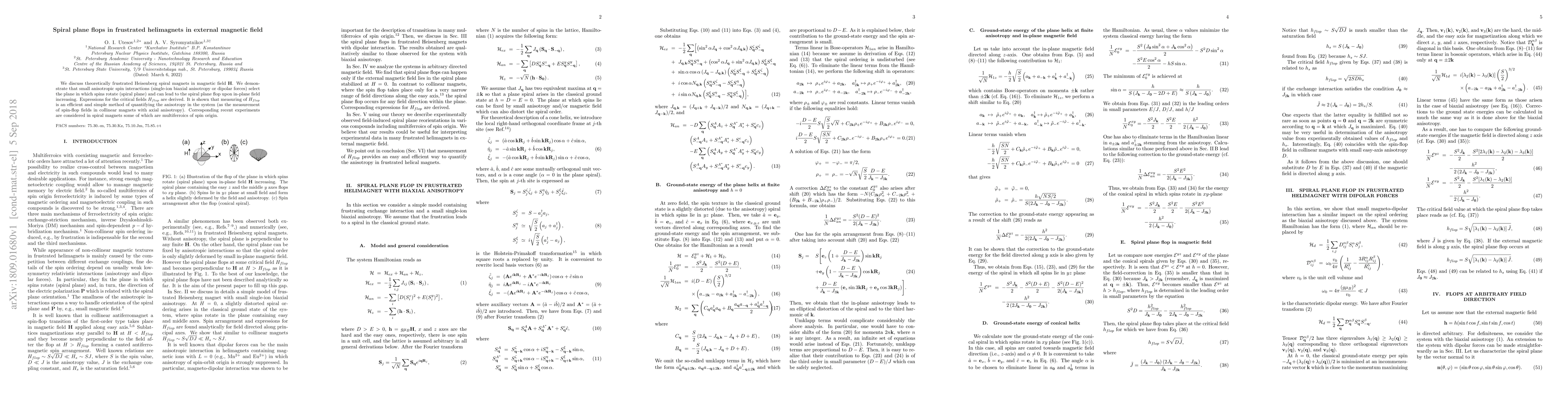This paper theoretically explores the behavior of frustrated Heisenberg spiral magnets under an external magnetic field, demonstrating that anisotropic spin interactions can determine the rotation plane of spins and lead to a spiral plane flop with increasing in-plane field. The critical field for this transition, $H_{flop}$, is derived and shown to be a useful measure of anisotropy in the system.