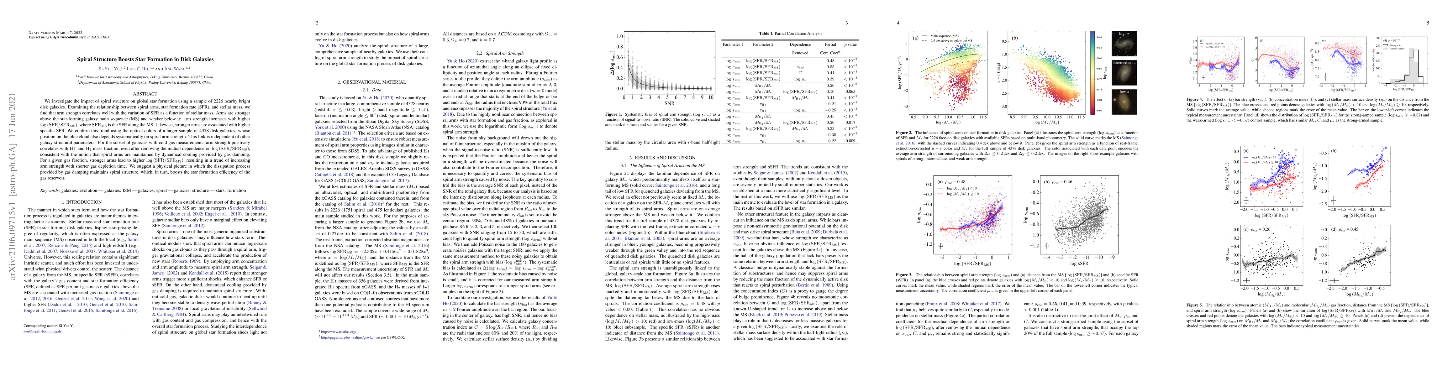 This study finds that the strength of spiral arms in disk galaxies correlates positively with star formation rates, suggesting that spiral structures enhance star formation efficiency. The correlation persists across various galaxy samples and is linked to higher gas mass fractions, indicating a role of gas damping in maintaining spiral arms and boosting star formation.