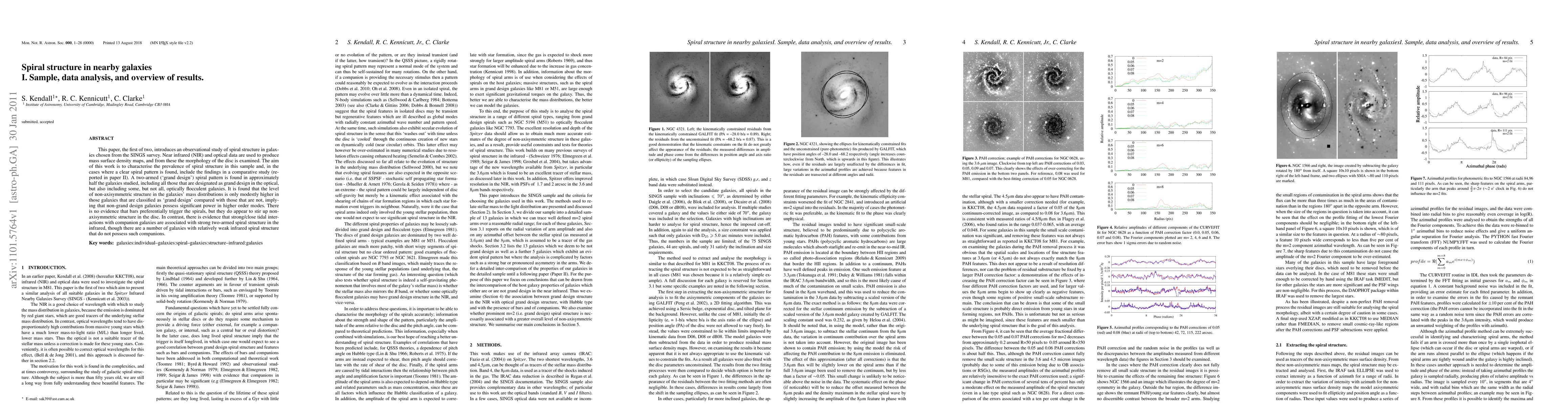This paper examines spiral structures in galaxies from the SINGS survey using NIR and optical data, finding that about half exhibit a two-armed spiral pattern. It suggests that non-grand design galaxies also have significant non-axisymmetric structure, and while bars stir up disc irregularities, tidal interactions with companions are more strongly linked to prominent infrared spirals.