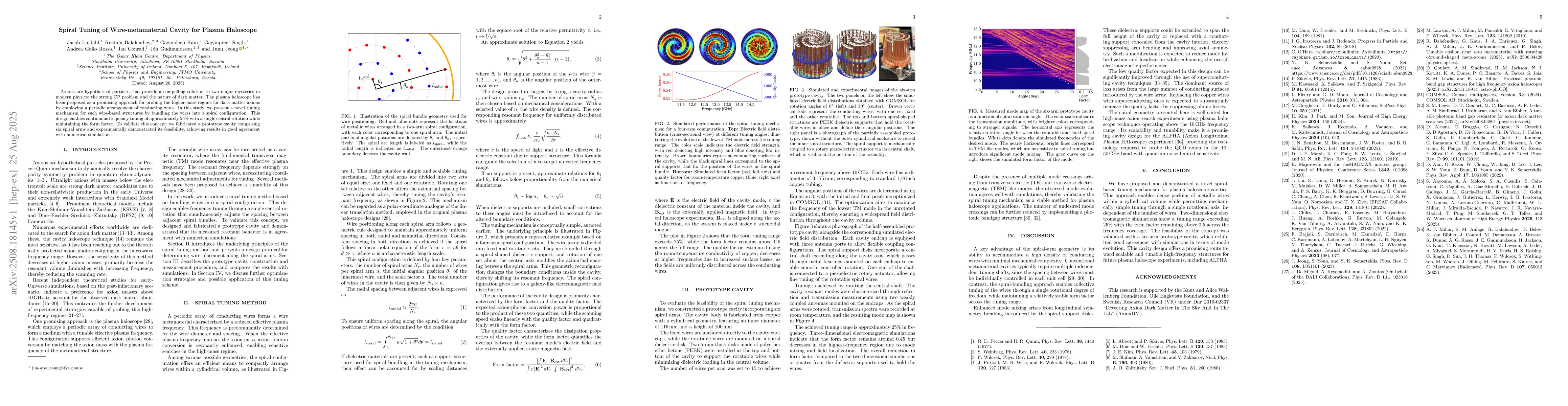 Axions are hypothetical particles that provide a compelling solution to two major mysteries in modern physics: the strong CP problem and the nature of dark matter. The plasma haloscope has been proposed as a promising approach for probing the higher-mass regime for dark matter axions by employing a periodic arrangement of conducting wires. In this study, we present a novel tuning mechanism for such wire-based structures by bundling the wires into a spiral configuration. This design enables continuous frequency tuning of approximately 25% with a single central rotation while maintaining the form factor. To validate this concept, we fabricated a prototype cavity comprising six spiral arms and experimentally demonstrated its feasibility, achieving results in good agreement with numerical simulations.
