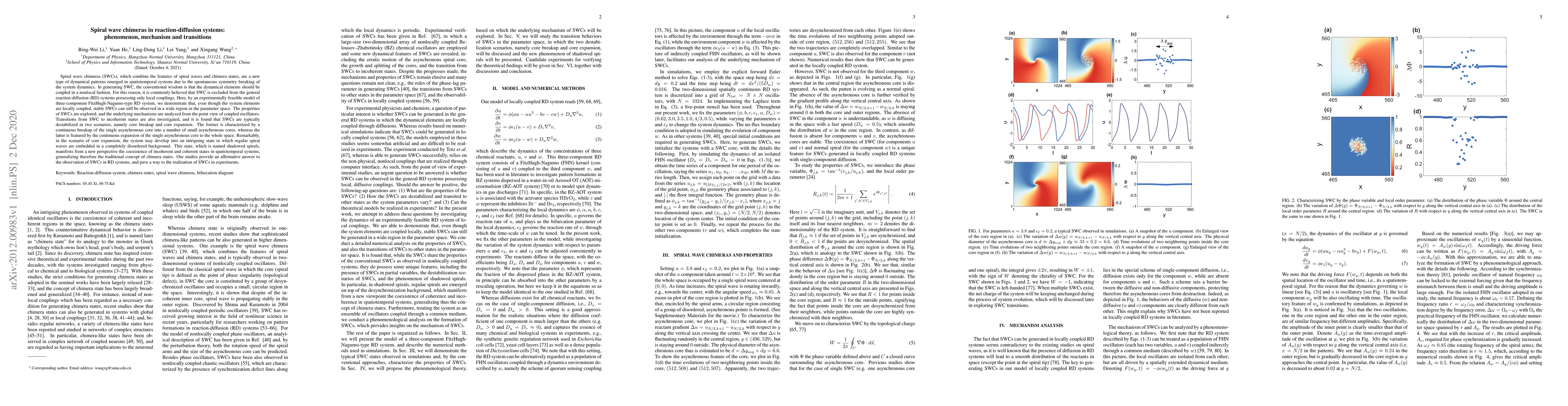 This paper demonstrates that spiral wave chimeras (SWCs) can emerge in locally coupled reaction-diffusion systems, contrary to conventional belief. The study explores the properties and mechanisms of SWCs, identifies transitions to incoherent states via core breakup and expansion, and introduces the novel shadowed spirals state.