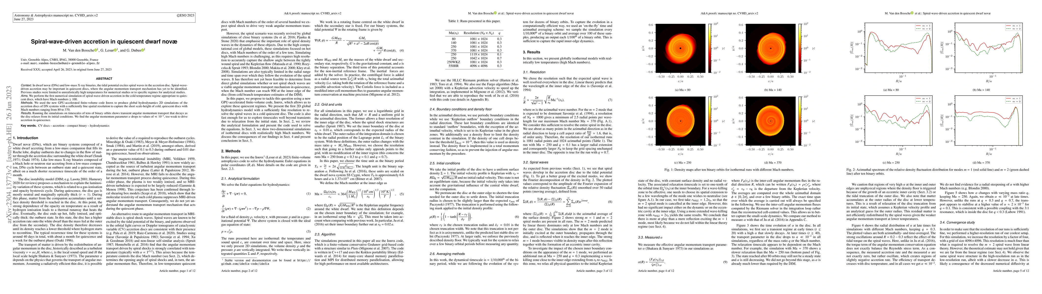 This paper investigates spiral wave driven accretion in quiescent dwarf novae using GPU-accelerated simulations. It finds transient angular momentum transport in cold accretion discs, but the angular momentum parameter drops too low to sustain accretion during quiescence.