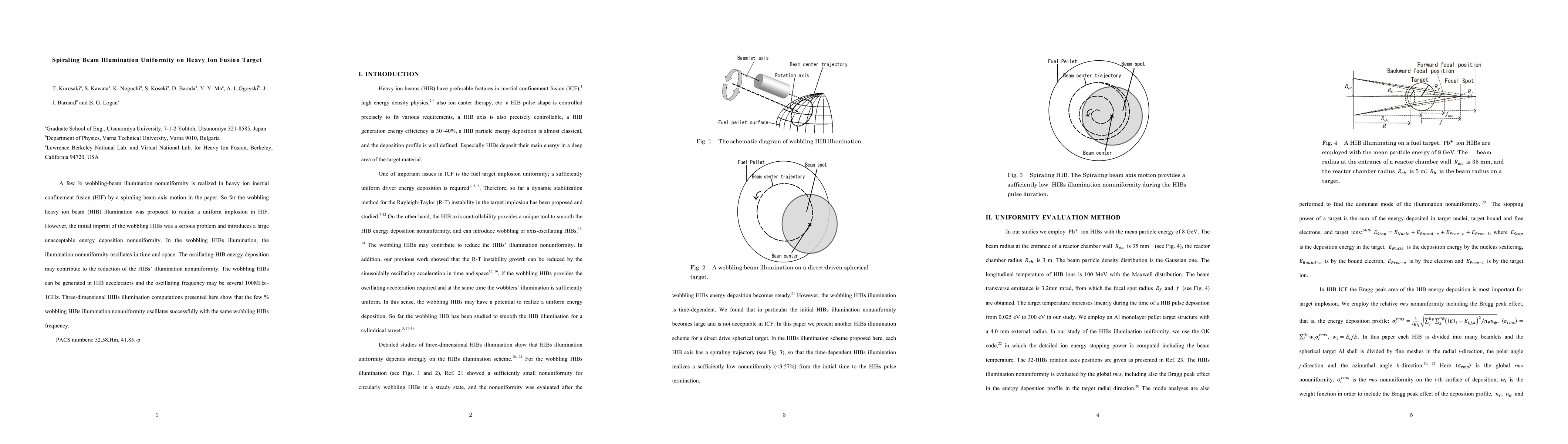 This paper proposes a spiraling beam axis motion to achieve a few percent wobbling-beam illumination nonuniformity in heavy ion inertial confinement fusion, aiming to mitigate the initial imprint problem and reduce energy deposition nonuniformity. Three-dimensional computations demonstrate successful oscillation of the wobbling heavy ion beam illumination at frequencies up to 1GHz.