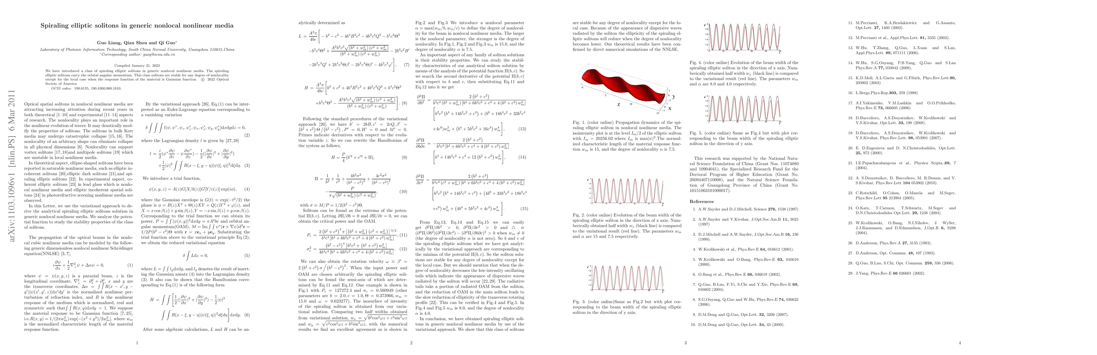 Summary: This paper introduces spiraling elliptic solitons in nonlocal nonlinear media that carry orbital angular momentum and remain stable across various nonlocalities, except when the material's response function is Gaussian. These solitons provide a new class of stable solutions in nonlocal media.