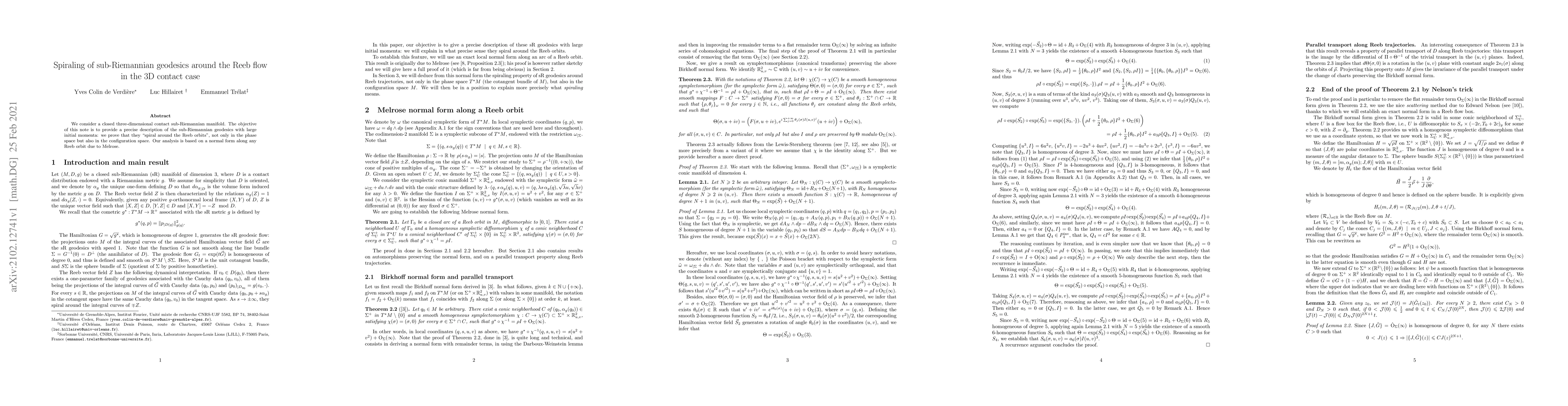 This paper investigates sub-Riemannian geodesics on a closed three-dimensional contact manifold, demonstrating that high-momentum geodesics spiral around Reeb orbits both in phase and configuration space. The analysis leverages Melrose's normal form along Reeb orbits to achieve this result.