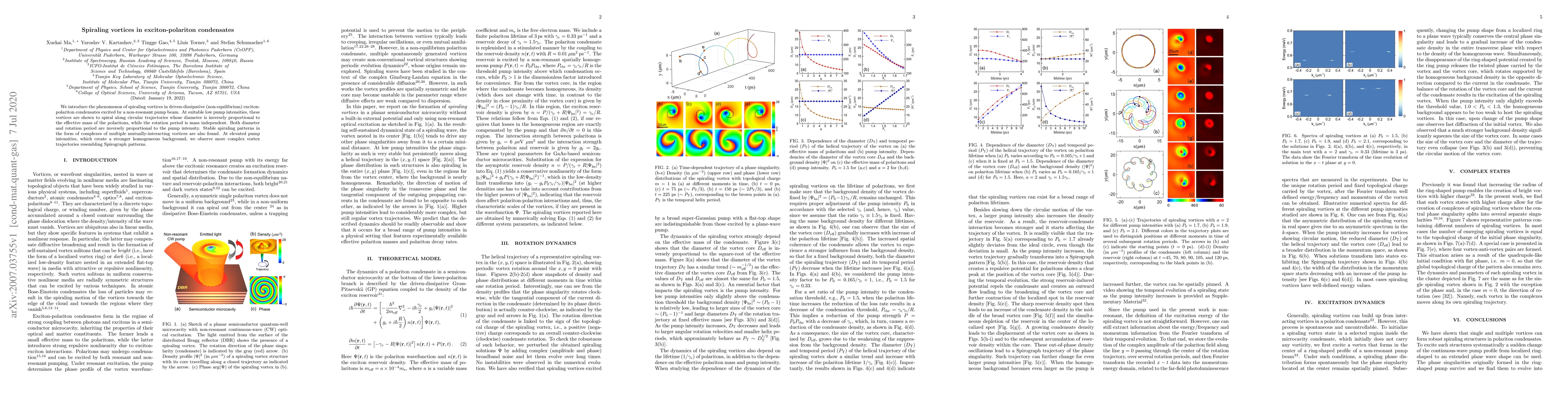 The paper presents a theoretical model and numerical analysis of spiraling vortices in exciton-polariton condensates, providing insights into their formation, stability, and dependence on system parameters.