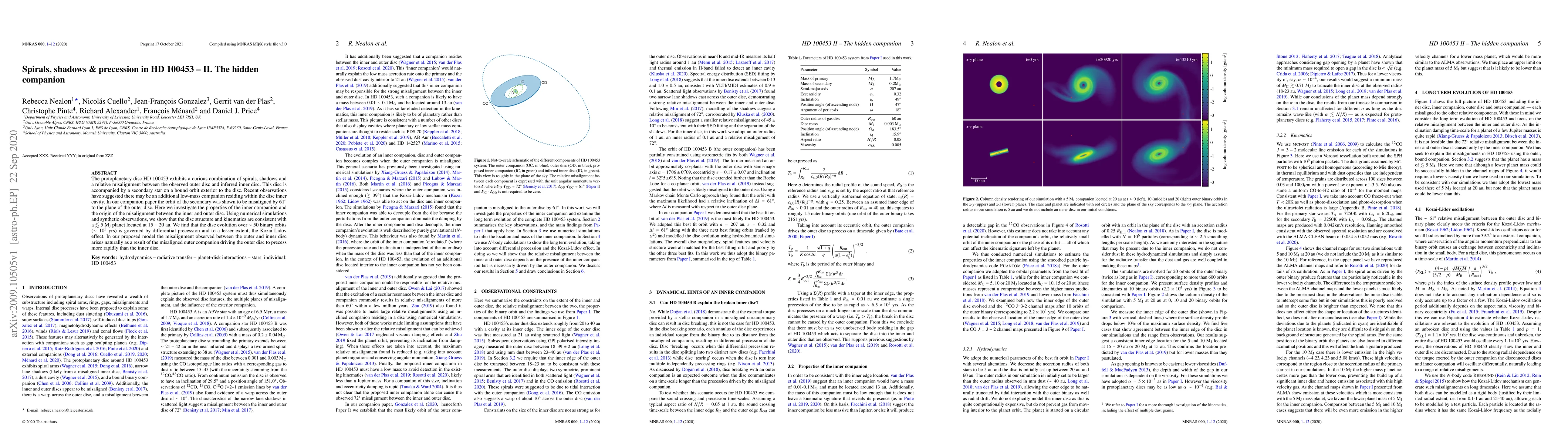 This paper investigates the properties of a potential low-mass companion within the protoplanetary disc HD 100453, suggesting it is a $\lesssim$ 5 Jupiter mass planet located at 15-20au. The misalignment between the inner and outer discs is attributed to differential precession driven by the misaligned outer companion.
