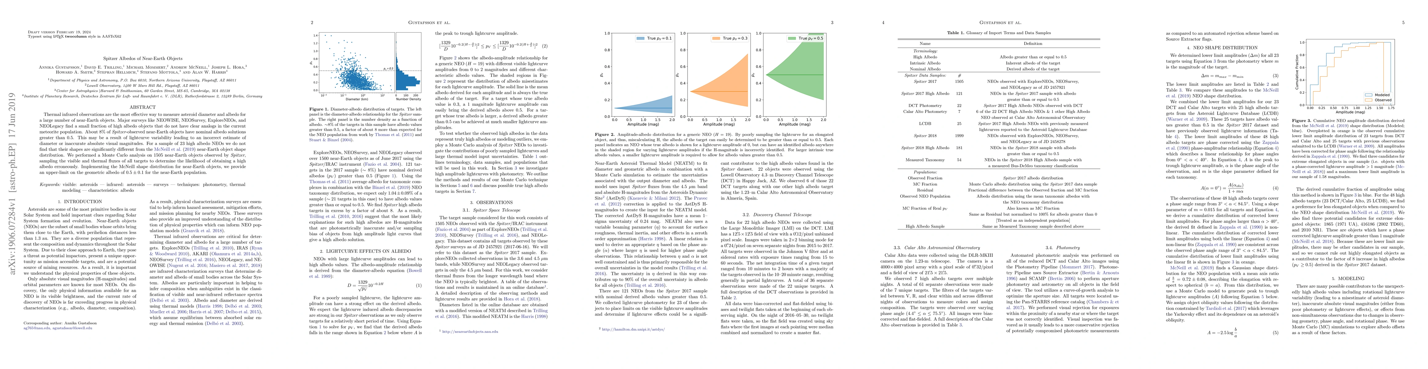 Thermal infrared observations are the most effective way to measure asteroid diameter and albedo for a large number of near-Earth objects. Major surveys like NEOWISE, NEOSurvey, ExploreNEOs, and NEOLegacy find a small fraction of high albedo objects that do not have clear analogs in the current meteorite population. About 8% of Spitzer-observed near-Earth objects have nominal albedo solutions greater than 0.5. This may be a result of lightcurve variability leading to an incorrect estimate of diameter or inaccurate absolute visual magnitudes. For a sample of 23 high albedo NEOs we do not find that their shapes are significantly different from the McNeill et al. (2019) near-Earth object shape distribution. We performed a Monte Carlo analysis on 1505 near-Earth objects observed by Spitzer, sampling the visible and thermal fluxes of all targets to determine the likelihood of obtaining a high albedo erroneously. Implementing the McNeill shape distribution for near-Earth objects, we provide an upper-limit on the geometric albedo of 0.5+/-0.1 for the near-Earth population.