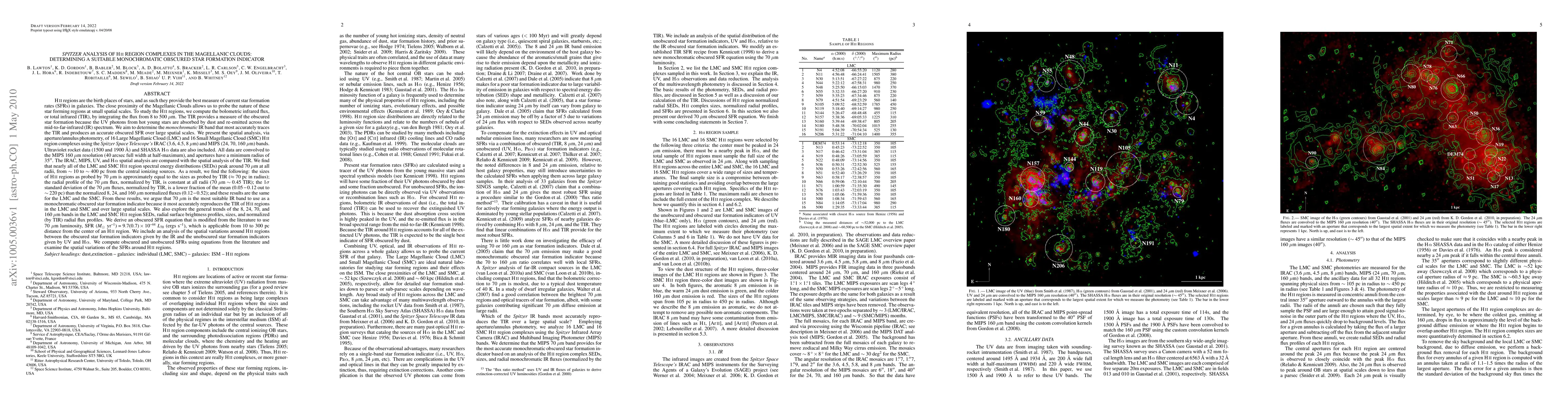 This paper uses Spitzer data to analyze HII regions in the Magellanic Clouds, identifying the 70um IR band as the most accurate indicator for estimating obscured star formation rates (SFRs). The study finds that 70um closely matches the total infrared flux and provides a stable radial profile across different spatial scales, making it superior to other IR bands for this purpose.