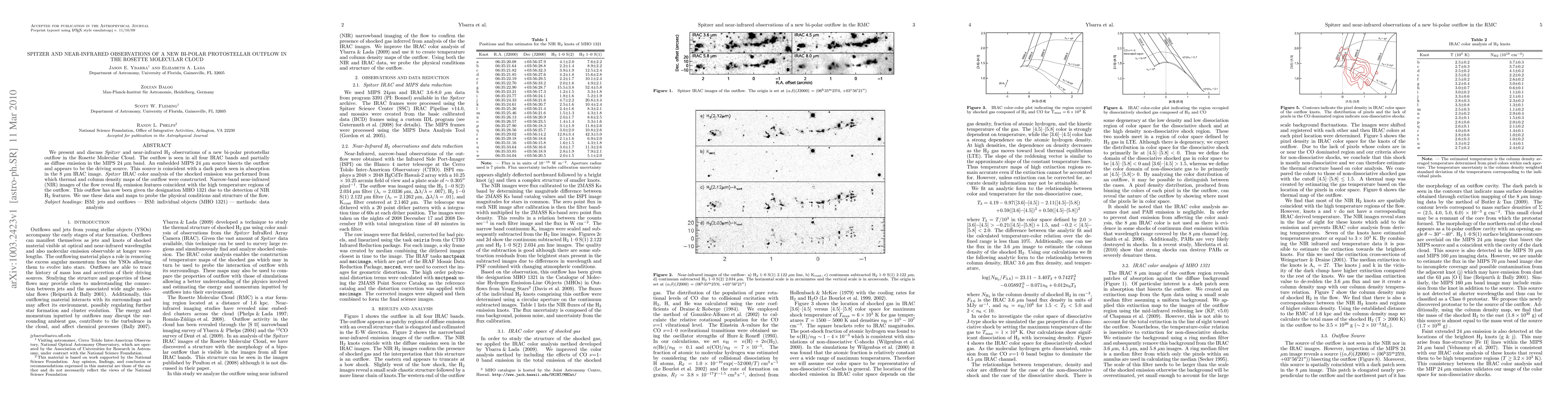 We present and discuss \emph{Spitzer} and near-infrared H$_{2}$ observations of a new bi-polar protostellar outflow in the Rosette Molecular Cloud. The outflow is seen in all four IRAC bands and partially as diffuse emission in the MIPS 24 $\mu$m band. An embedded MIPS 24 $\mu$m source bisects the outflow and appears to be the driving source. This source is coincident with a dark patch seen in absorption in the 8 $\mu$m IRAC image. \emph{Spitzer} IRAC color analysis of the shocked emission was performed from which thermal and column density maps of the outflow were constructed. Narrow-band near-infrared (NIR) images of the flow reveal H$_2$ emission features coincident with the high temperature regions of the outflow. This outflow has now been given the designation MHO 1321 due to the detection of NIR H$_2$ features. We use these data and maps to probe the physical conditions and structure of the flow.