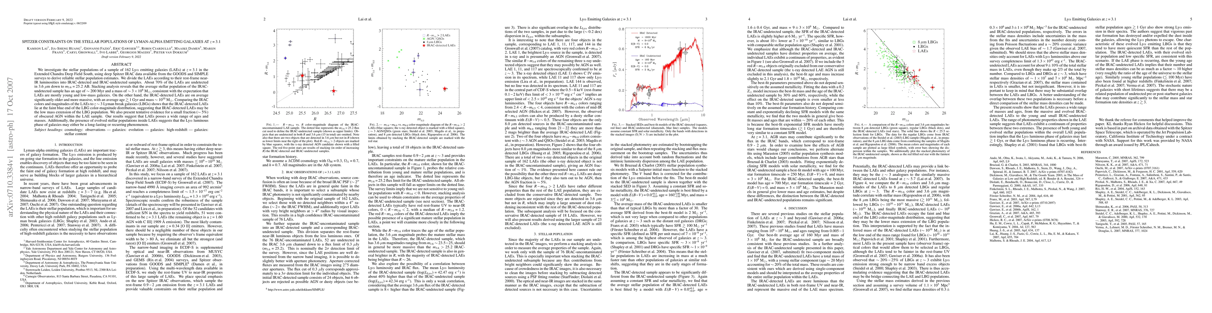 This paper uses Spitzer IRAC data to analyze the stellar populations of 162 Lyman-alpha emitting galaxies (LAEs) at z = 3.1, finding that most LAEs are young and low-mass, while a subset is older and more massive, suggesting a diverse range of galaxy evolution stages within LAEs.