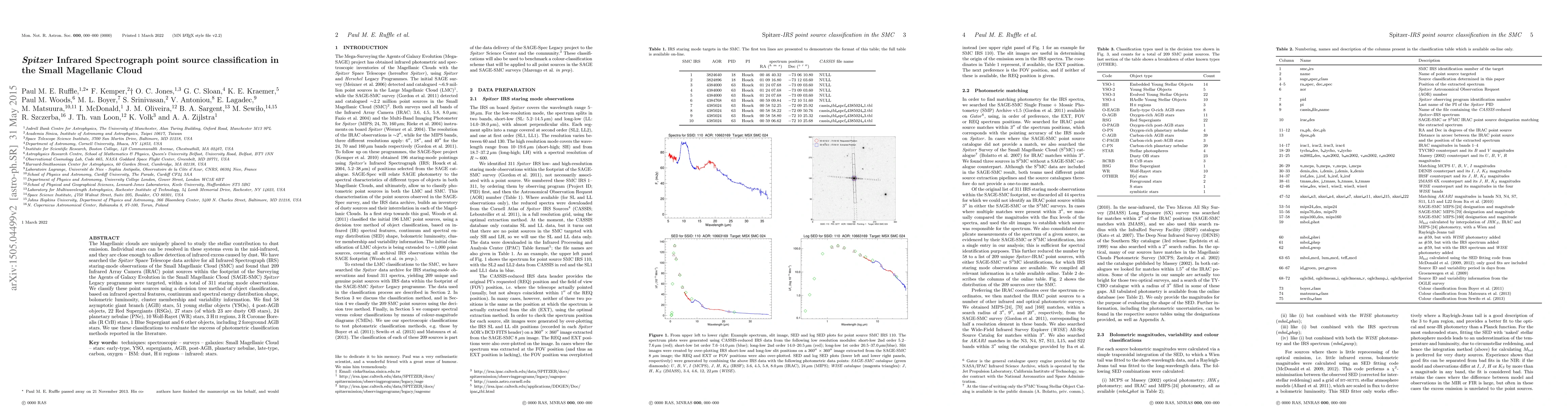This paper classifies 209 Spitzer Space Telescope Infrared Spectrograph point sources in the Small Magellanic Cloud using a decision tree method, identifying various types of stars and stellar objects, and evaluates the effectiveness of existing photometric classification methods.