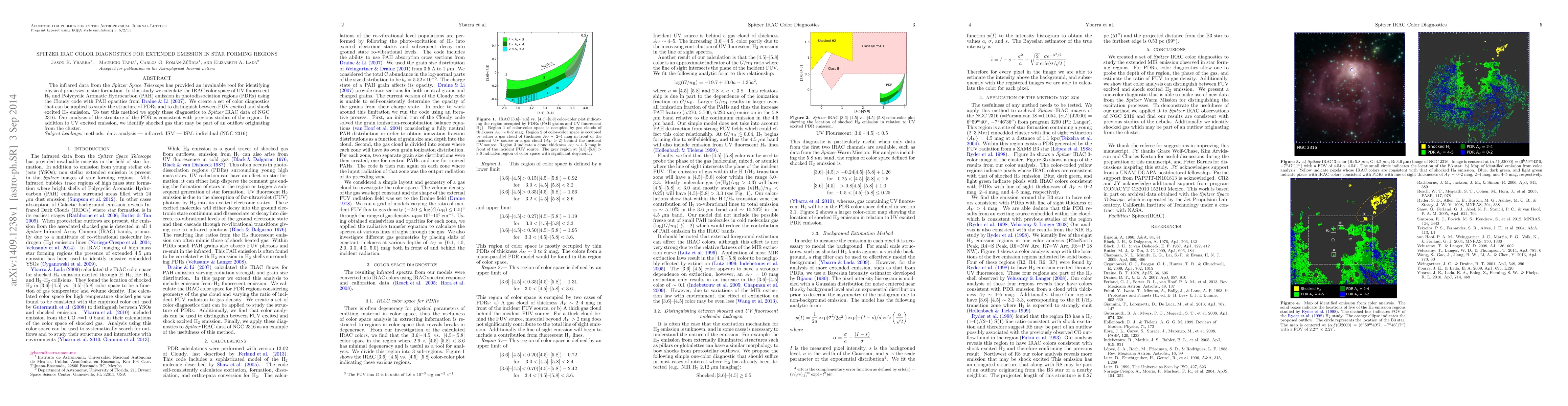 Researchers used Spitzer Space Telescope data to create color diagnostics for detecting physical processes in star-forming regions, identifying shocked gas in an outflow from a cluster.