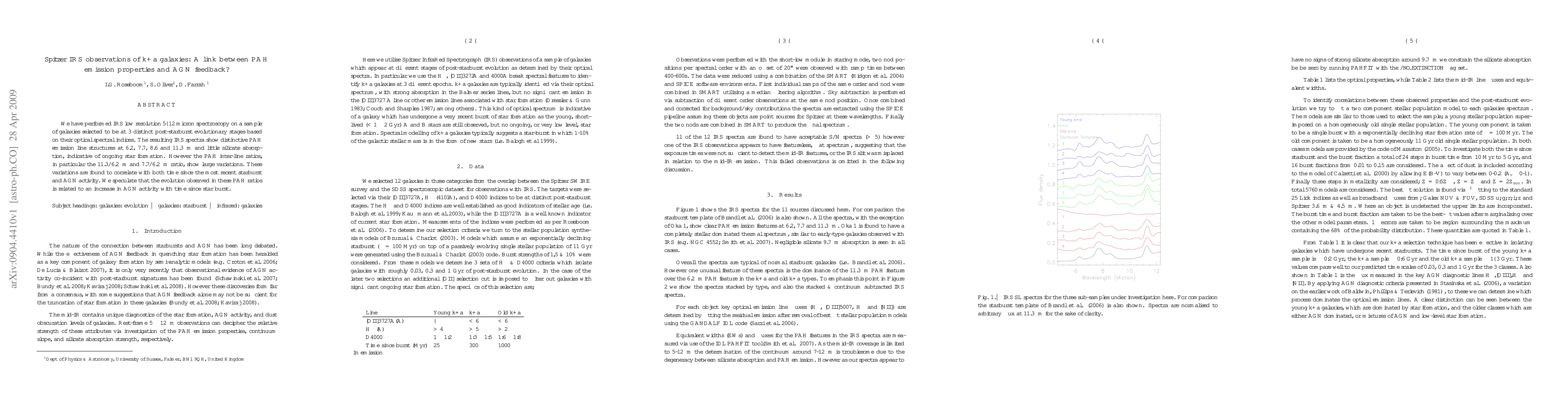 We have performed IRS low resolution 5-12 micron spectroscopy on a sample of galaxies selected to be at 3 distinct post-starburst evolutionary stages based on their optical spectral indices. The resulting IRS spectra show distinctive PAH emission line structures at 6.2, 7.7, 8.6 and 11.3 micron and little silicate absorption, indicative of ongoing star formation. However the PAH inter-line ratios, in particular the 11.3/6.2 micron and 7.7/6.2 micron ratio, show large variations. These variations are found to correlate with both time since the most recent starburst and AGN activity. We speculate that the evolution observed in these PAH ratios is related to an increase in AGN activity with time since star burst.