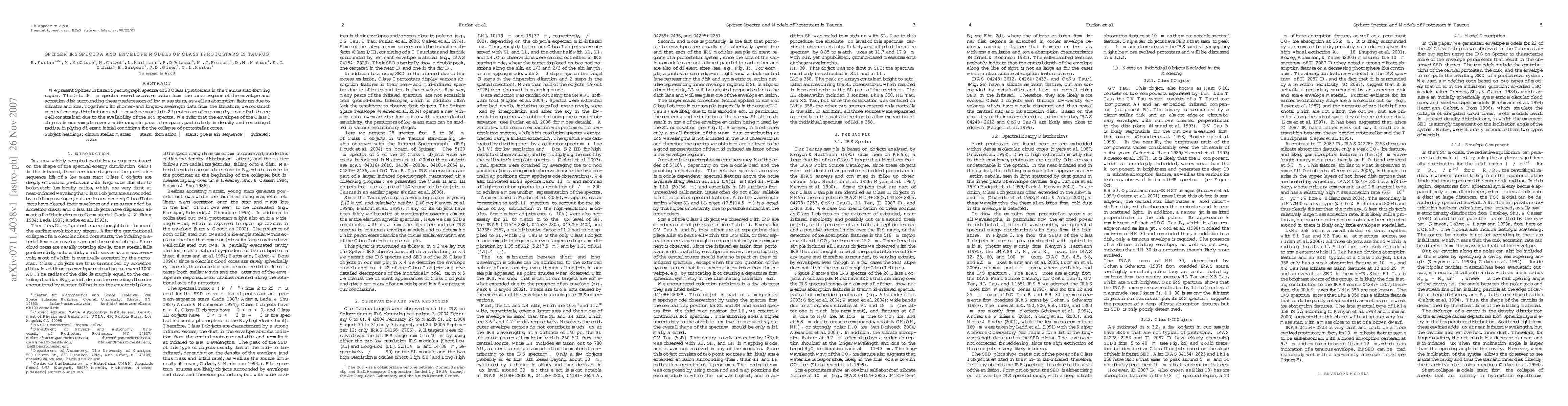 We present Spitzer Infrared Spectrograph spectra of 28 Class I protostars in the Taurus star-forming region. The 5 to 36 micron spectra reveal excess emission from the inner regions of the envelope and accretion disk surrounding these predecessors of low-mass stars, as well as absorption features due to silicates and ices. Together with shorter- and longer-wavelength data from the literature, we construct spectral energy distributions and fit envelope models to 22 protostars of our sample, most of which are well-constrained due to the availability of the IRS spectra. We infer that the envelopes of the Class I objects in our sample cover a wide range in parameter space, particularly in density and centrifugal radius, implying different initial conditions for the collapse of protostellar cores.