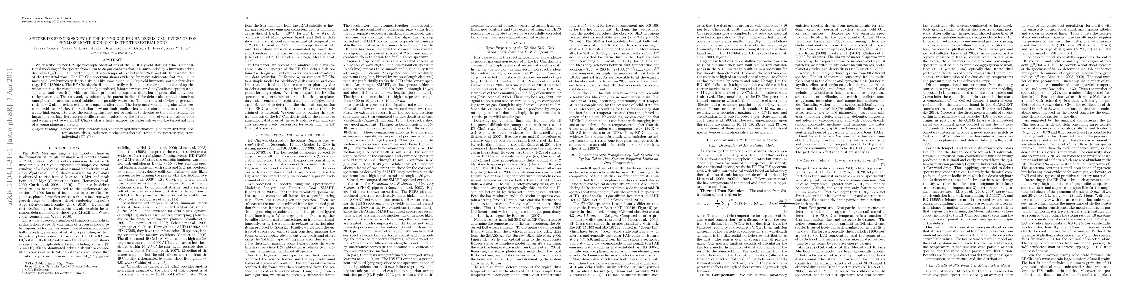 The Spitzer IRS spectroscopy of the 10 Myr-old star EF Cha reveals a debris disk rich in phyllosilicates, indicating aqueous alteration of primordial materials, suggesting water delivery to the terrestrial zone. The disk's composition and high collision rate of planetesimals imply significant geological activity in the system.