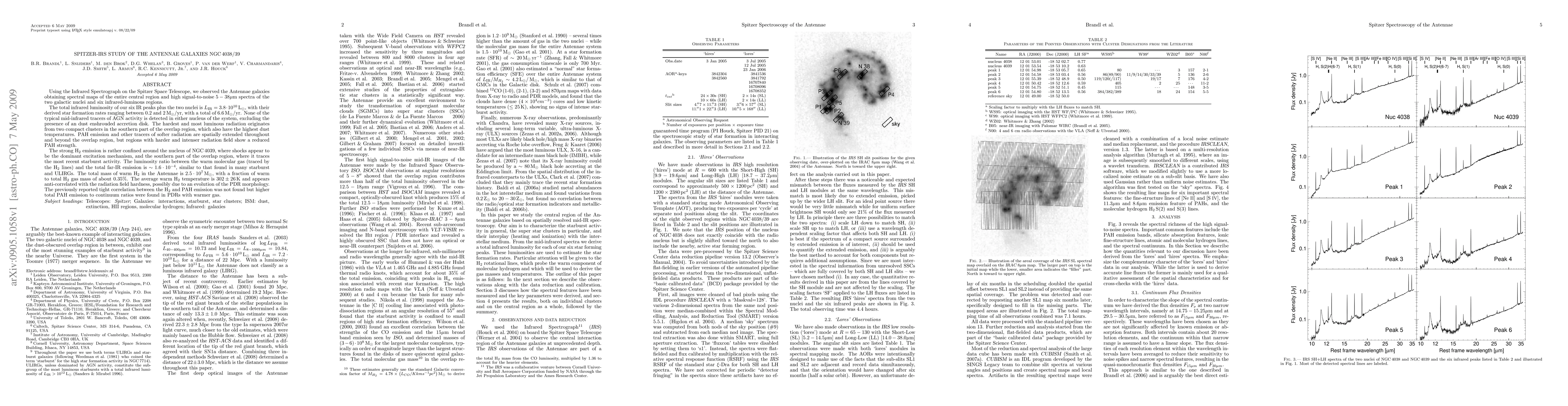 The paper presents a comprehensive analysis of Spitzer-IRS spectral data, providing detailed measurements of infrared luminosity, star formation rates, and molecular gas properties in the Antennae galaxies.