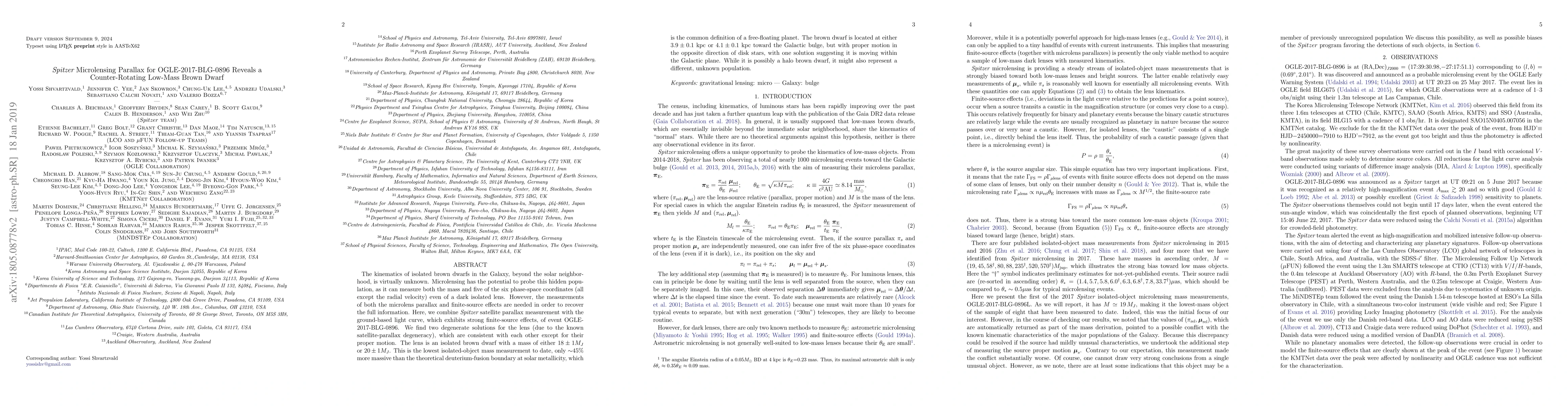 The kinematics of isolated brown dwarfs in the Galaxy, beyond the solar neighborhood, is virtually unknown. Microlensing has the potential to probe this hidden population, as it can measure both the mass and five of the six phase-space coordinates (all except the radial velocity) even of a dark isolated lens. However, the measurements of both the microlens parallax and finite-source effects are needed in order to recover the full information. Here, we combine $Spitzer$ satellite parallax measurement with the ground-based light curve, which exhibits strong finite-source effects, of event OGLE-2017-BLG-0896. We find two degenerate solutions for the lens (due to the known satellite-parallax degeneracy), which are consistent with each other except for their proper motion. The lens is an isolated brown dwarf with a mass of either $18\pm1M_J$ or $20\pm1M_J$. This is the lowest isolated-object mass measurement to date, only $\sim$45\% more massive than the theoretical deuterium-fusion boundary at solar metallicity, which is the common definition of a free-floating planet. The brown dwarf is located at either $3.9\pm0.1$ kpc or $4.1\pm0.1$ kpc toward the Galactic bulge, but with proper motion in the opposite direction of disk stars, with one solution suggesting it is moving within the Galactic plane. While it is possibly a halo brown dwarf, it might also represent a different, unknown population.