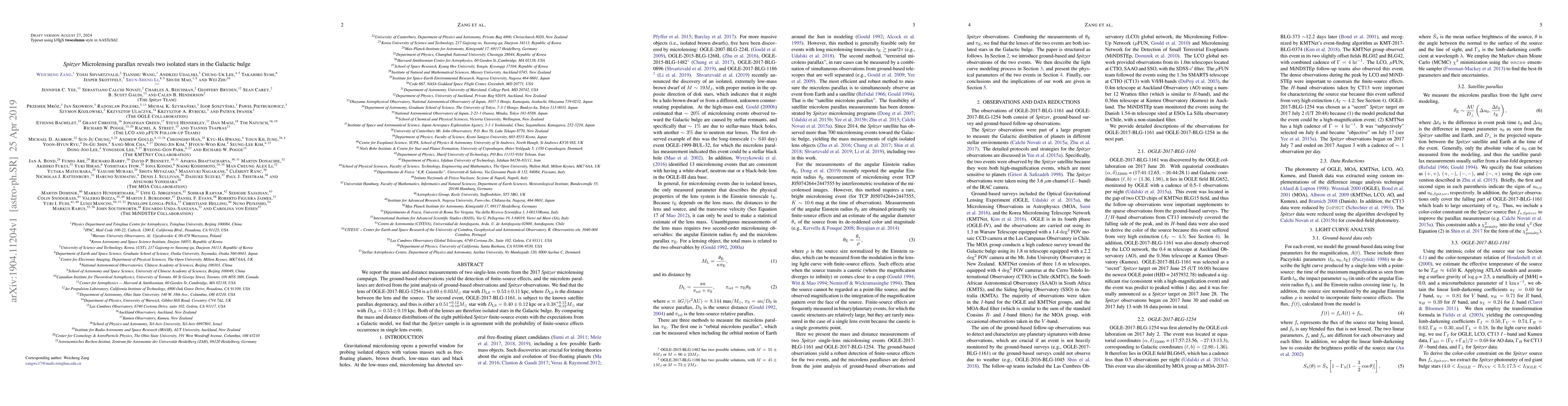 This paper reports mass and distance measurements of two isolated stars in the Galactic bulge using Spitzer microlensing parallax. The first star has a mass of $0.60 \pm 0.03 M_{\odot}$ and a distance of $0.53 \pm 0.11$ kpc, while the second star has a mass of either $0.51^{+0.12}_{-0.10} M_{\odot}$ with $0.40 \pm 0.12$ kpc or $0.38^{+0.13}_{-0.12} M_{\odot}$ with $0.53 \pm 0.19$ kpc.