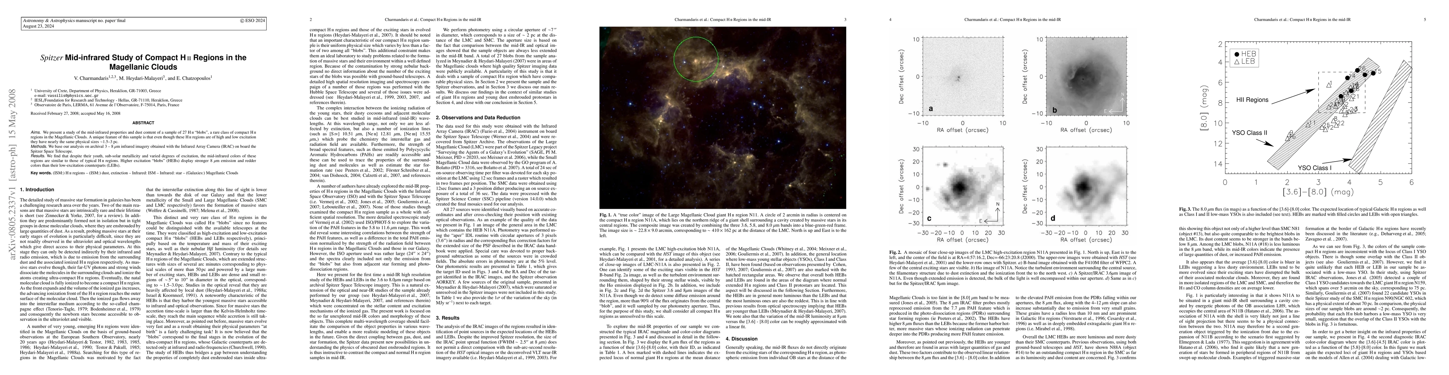 This study analyzes the mid-infrared properties and dust content of 27 compact HII regions in the Magellanic Clouds using Spitzer Space Telescope data. Despite varying excitation levels and sub-solar metallicity, these regions exhibit similar mid-infrared colors, with higher excitation regions showing stronger 8 micron emission.
