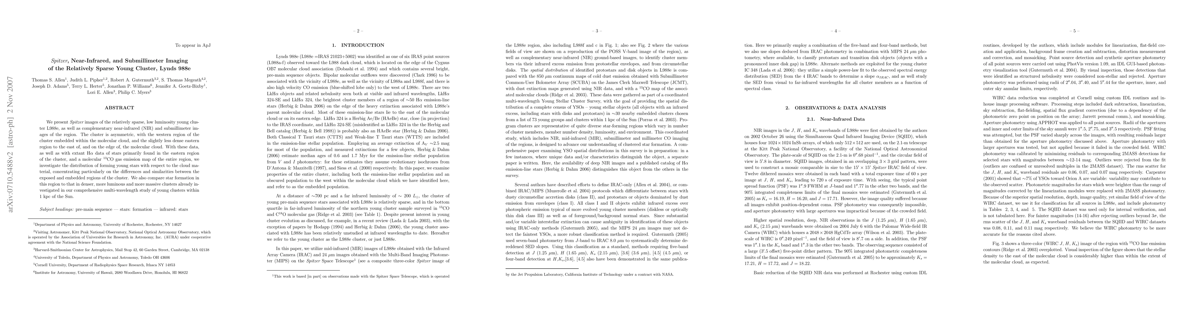 We present {\it Spitzer} images of the relatively sparse, low luminosity young cluster L988e, as well as complementary near-infrared (NIR) and submillimeter images of the region. The cluster is asymmetric, with the western region of the cluster embedded within the molecular cloud, and the slightly less dense eastern region to the east of, and on the edge of, the molecular cloud. With these data, as well as with extant H$\alpha$ data of stars primarily found in the eastern region of the cluster, and a molecular $^{13}$CO gas emission map of the entire region, we investigate the distribution of forming young stars with respect to the cloud material, concentrating particularly on the differences and similarities between the exposed and embedded regions of the cluster. We also compare star formation in this region to that in denser, more luminous and more massive clusters already investigated in our comprehensive multi-wavelength study of young clusters within 1 kpc of the Sun.