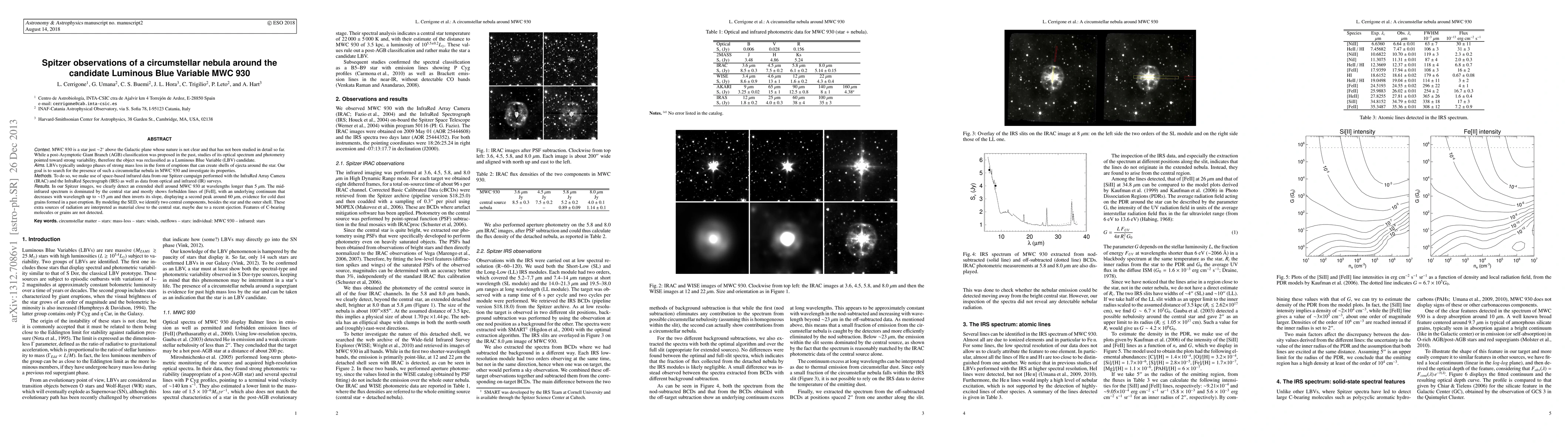 Researchers used Spitzer space telescope data to detect a circumstellar nebula around MWC 930, a Luminous Blue Variable candidate, revealing an extended shell of ejecta and evidence for cold dust grains formed in a past eruption.