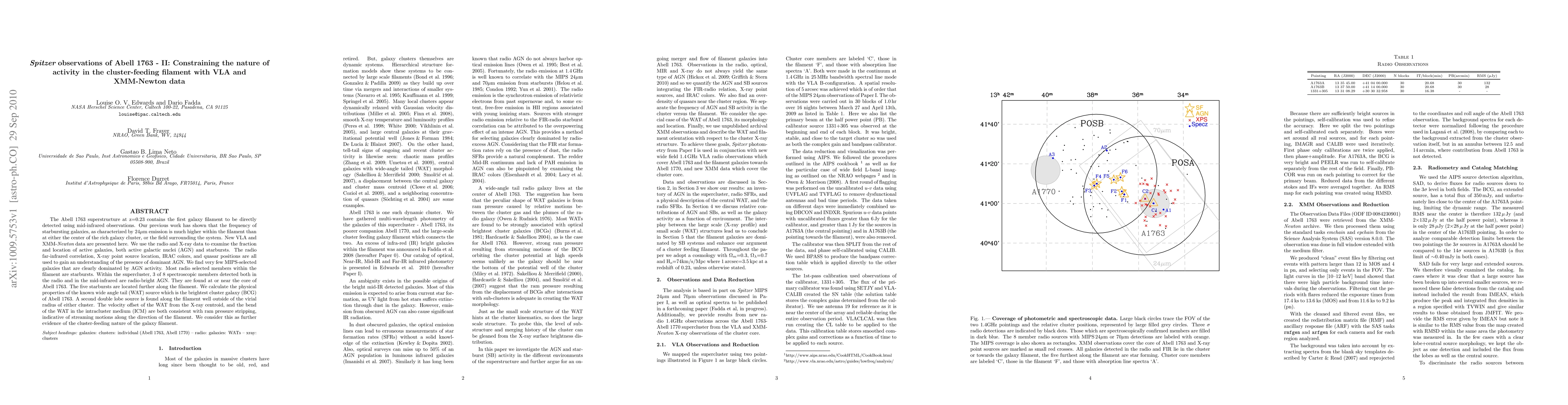 This study uses VLA and XMM-Newton data to investigate the nature of activity in the galaxy filament of Abell 1763, finding that most radio-selected galaxies within the filament are starbursts rather than active galactic nuclei (AGN). The analysis reveals a few radio-bright AGN near the cluster core, while starbursts are located further along the filament, suggesting ram pressure stripping as evidence of cluster-feeding activity.