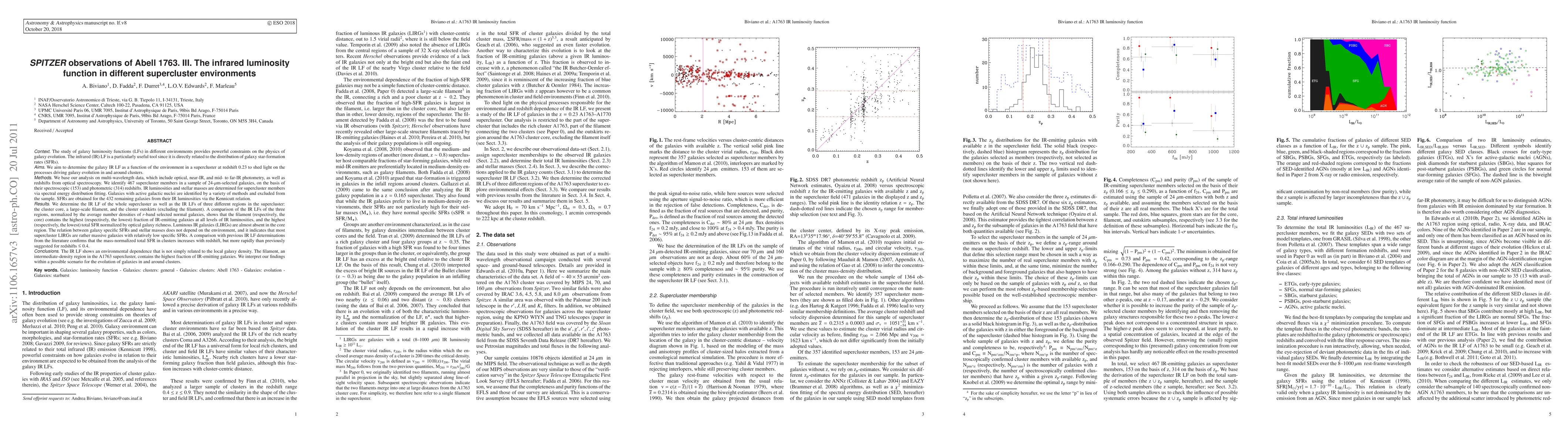 This study uses Spitzer observations to determine the infrared luminosity function of galaxies in different environments within the Abell 1763 supercluster at z=0.23. The analysis reveals an environmental dependence in the IR luminosity function, with the filament region showing the highest fraction of IR-emitting galaxies, while the cluster core has the lowest, indicating complex galaxy evolution processes.