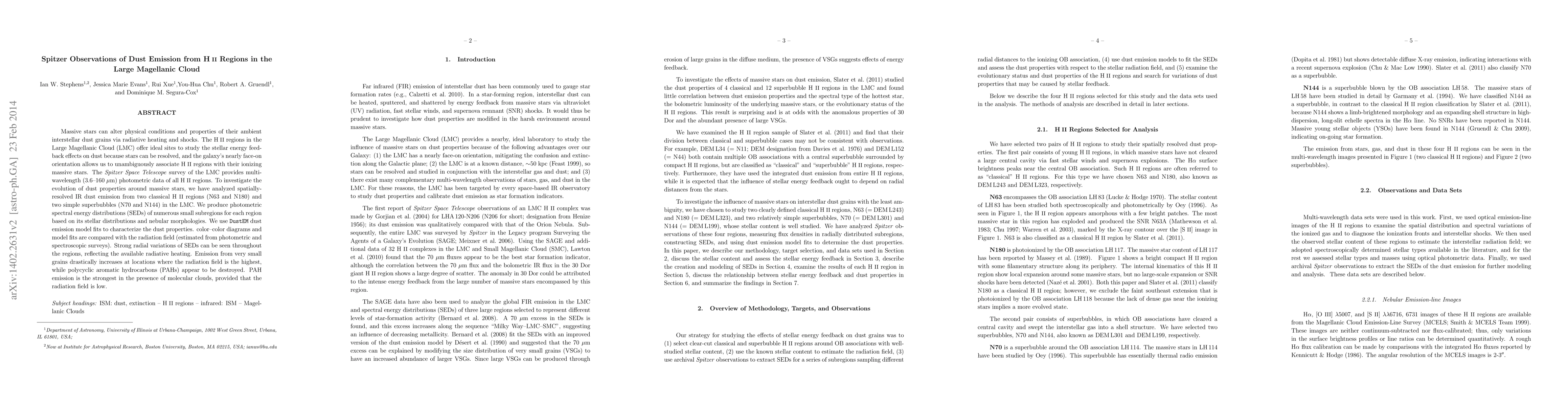 This paper uses Spitzer Space Telescope data to study the dust emission from HII regions in the Large Magellanic Cloud, revealing strong radial variations in spectral energy distributions that reflect radiative heating from massive stars. The analysis shows an increase in small grain emission and destruction of polycyclic aromatic hydrocarbons in high radiation fields.
