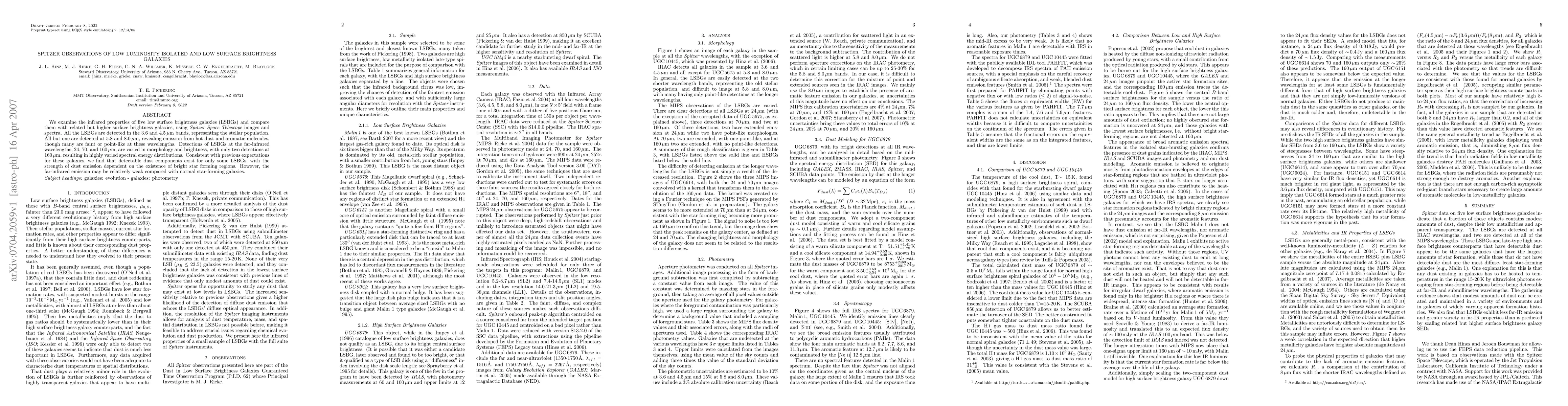 Researchers used Spitzer Space Telescope data to study low surface brightness galaxies, finding that many have detectable dust components, but their far-infrared emission is often weak compared to normal star-forming galaxies.