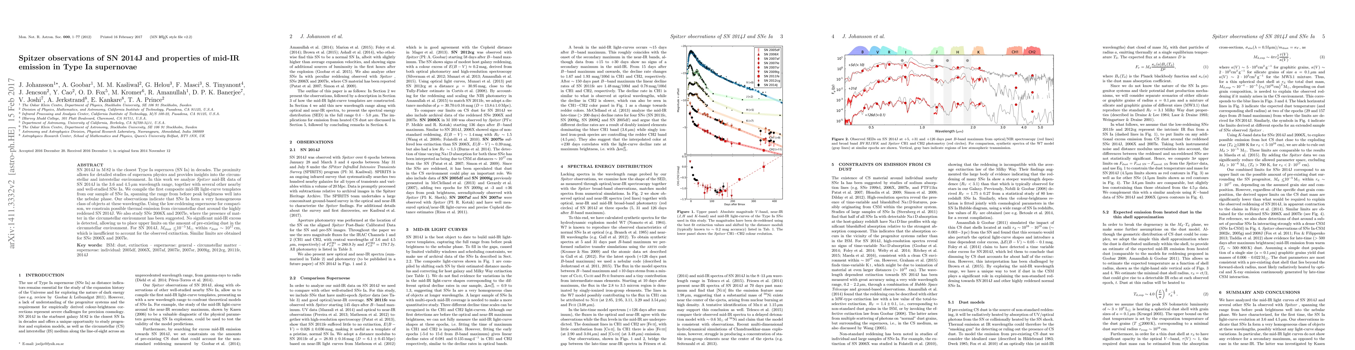 Researchers studied the closest Type Ia supernova, SN 2014J, using Spitzer mid-IR data to understand its properties and circumstellar environment.