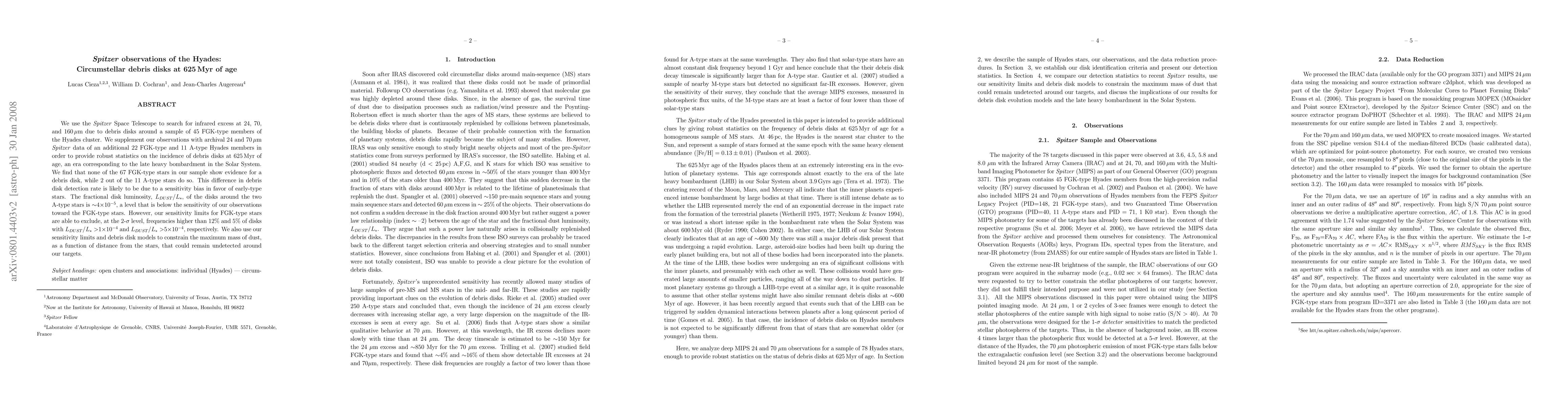 We use the Spitzer Space Telescope to search for infrared excess at 24, 70, and 160 micron due to debris disks around a sample of 45 FGK-type members of the Hyades cluster. We supplement our observations with archival 24 and 70 micron Spitzer data of an additional 22 FGK-type and 11 A-type Hyades members in order to provide robust statistics on the incidence of debris disks at 625 Myr of age an era corresponding to the late heavy bombardment in the Solar System. We find that none of the 67 FGK-type stars in our sample show evidence for a debris disk, while 2 out of the 11 A-type stars do so. This difference in debris disk detection rate is likely to be due to a sensitivity bias in favor of early-type stars. The fractional disk luminosity, L_dust/L*, of the disks around the two A-type stars is ~4.0E-5, a level that is below the sensitivity of our observations toward the FGK-type stars. However, our sensitivity limits for FGK-type stars are able to exclude, at the 2-sigma level, frequencies higher than 12% and 5% of disks with L_dust/L* > 1.0E-4 and L_dust/L* > 5.0E-4, respectively. We also use our sensitivity limits and debris disk models to constrain the maximum mass of dust, as a function of distance from the stars, that could remain undetected around our targets.