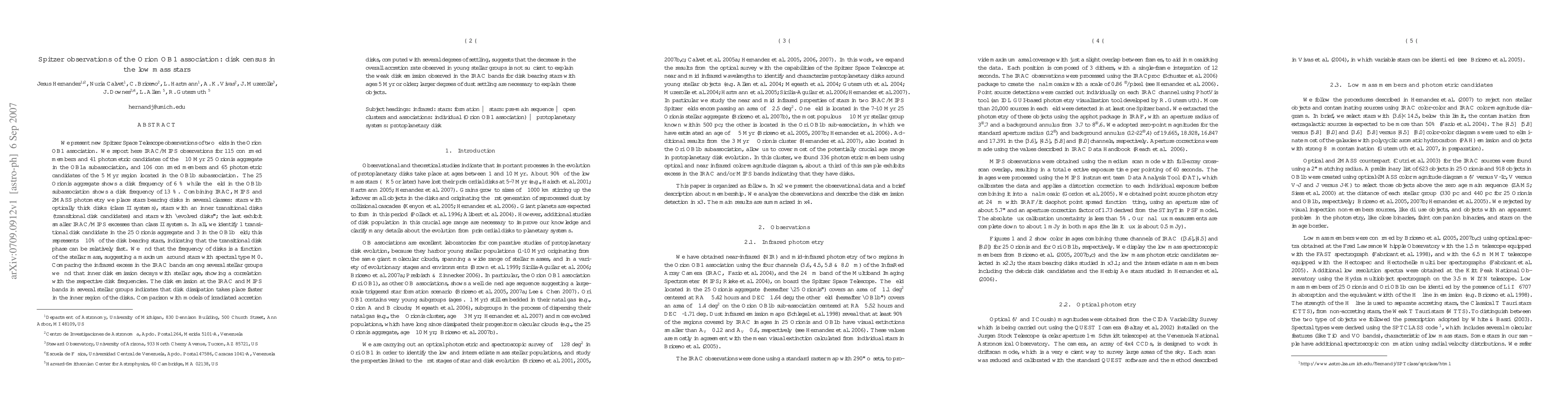 Spitzer observations reveal the disk frequency in low-mass stars of the Orion OB1 association, finding 6% in the 25 Orionis aggregate and 13% in the OB1b region. Disk dissipation correlates with stellar age, suggesting faster dissipation in the inner regions.