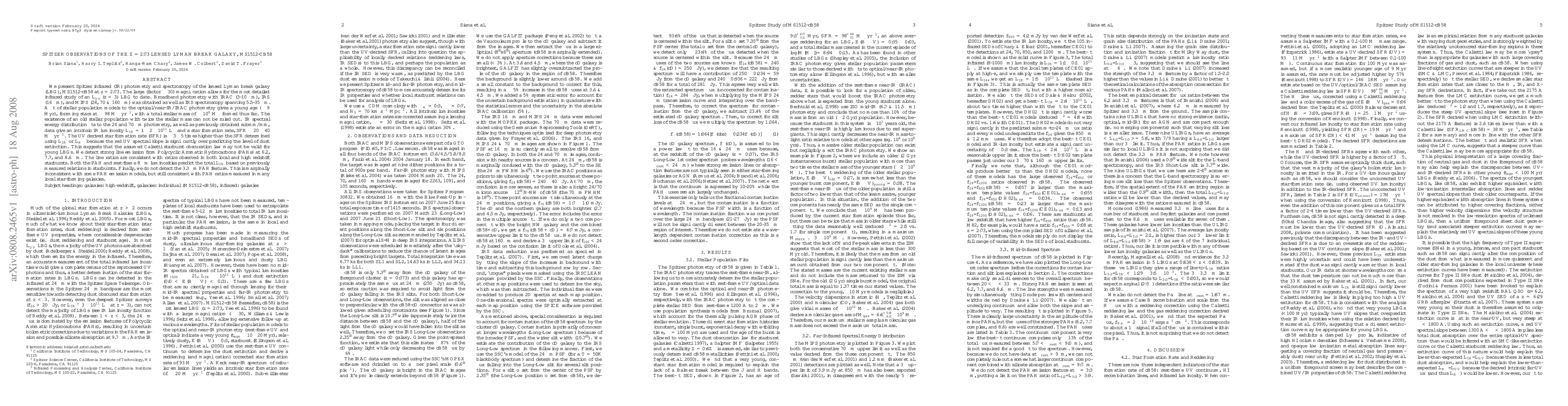 This paper presents Spitzer infrared observations of the lensed Lyman break galaxy MS1512-cB58 at z=2.73, revealing a young, star-forming galaxy with a high star formation rate of ~20-40 M_sun/yr, suggesting that the Calzetti law may not accurately describe dust extinction in young galaxies. The study also detects strong PAH emission lines.