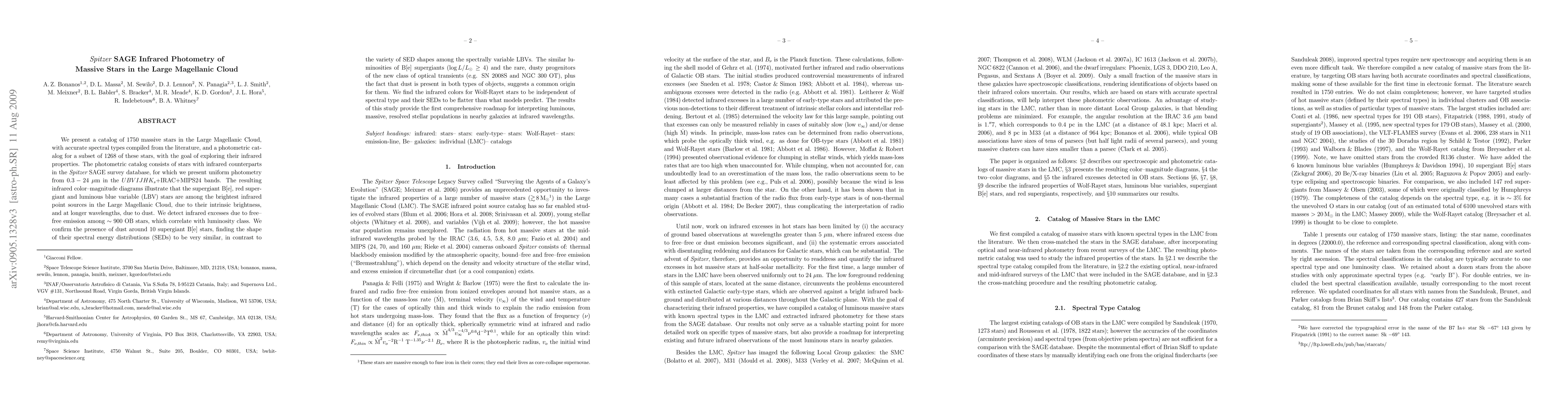 This study catalogs 1750 massive stars in the Large Magellanic Cloud, providing infrared photometry for 1268 stars and exploring their infrared properties. The research highlights the infrared brightness of supergiant B[e], red supergiant, and luminous blue variable stars, and identifies dust around certain stars, suggesting common origins.