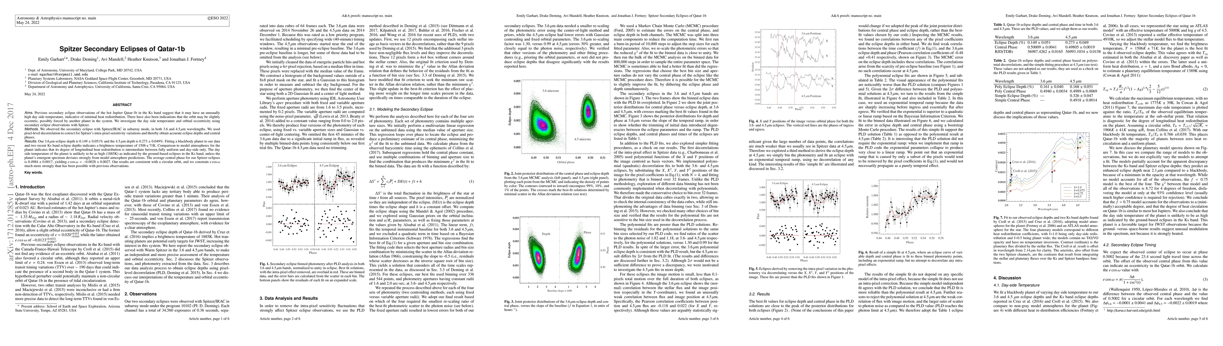 The research utilized Spitzer secondary eclipse observations in the 3.6 and 4.5 micron bands for Qatar-1b, employing pixel-level decorrelation to correct for Spitzer's intra-pixel sensitivity variations, resulting in accurate eclipse depths and central phases.