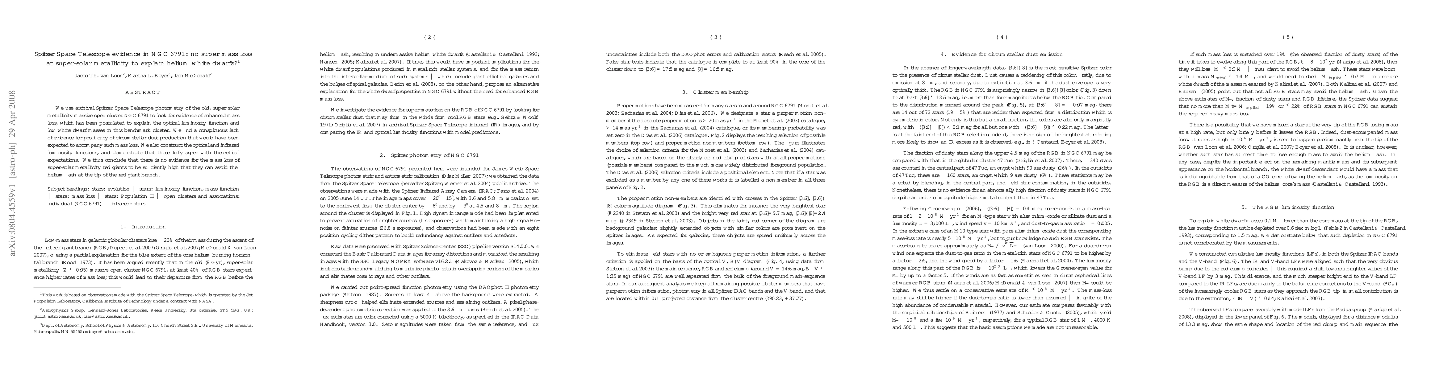 The Spitzer Space Telescope data of NGC 6791, an old cluster with super-solar metallicity, shows no evidence of enhanced mass loss in red giants, contradicting the hypothesis that such mass loss could explain the low white dwarf masses and optical luminosity function. The optical and infrared luminosity functions align with theoretical predictions, suggesting no significant super-mass-loss to avoid the helium flash.