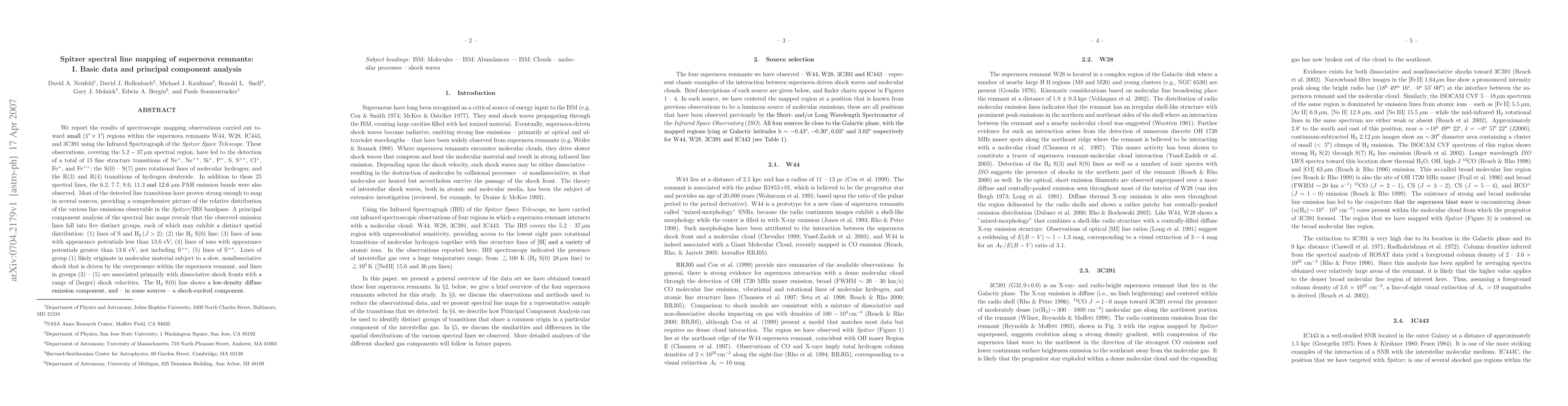 Researchers mapped spectral lines from supernova remnants using Spitzer Space Telescope data, identifying 25 distinct emission lines and five groups with different spatial distributions, shedding light on the physics of these cosmic events.