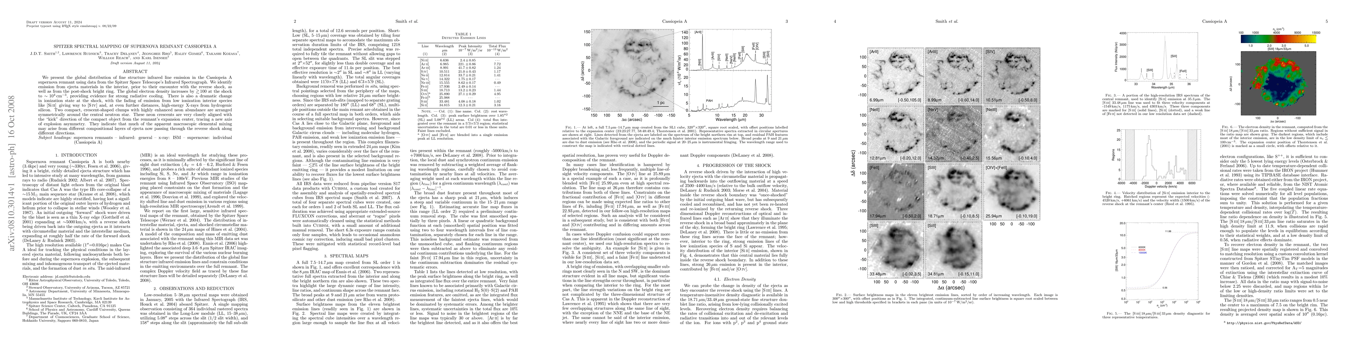 We present the global distribution of fine structure infrared line emission in the Cassiopeia A supernova remnant using data from the Spitzer Space Telescope's Infrared Spectrograph. We identify emission from ejecta materials in the interior, prior to their encounter with the reverse shock, as well as from the post-shock bright ring. The global electron density increases by >~100 at the shock to ~10^4 cm^-3, providing evidence for strong radiative cooling. There is also a dramatic change in ionization state at the shock, with the fading of emission from low ionization interior species like [SiII], giving way to [SIV] and, at even further distances, high-energy X-rays from hydrogenic silicon. Two compact, crescent-shaped clumps with highly enhanced neon abundance are arranged symmetrically around the central neutron star. These neon crescents are very closely aligned with the "kick" direction of the compact object from the remnant's expansion center, tracing a new axis of explosion asymmetry. They indicate that much of the apparent macroscopic elemental mixing may arise from different compositional layers of ejecta now passing through the reverse shock along different directions.