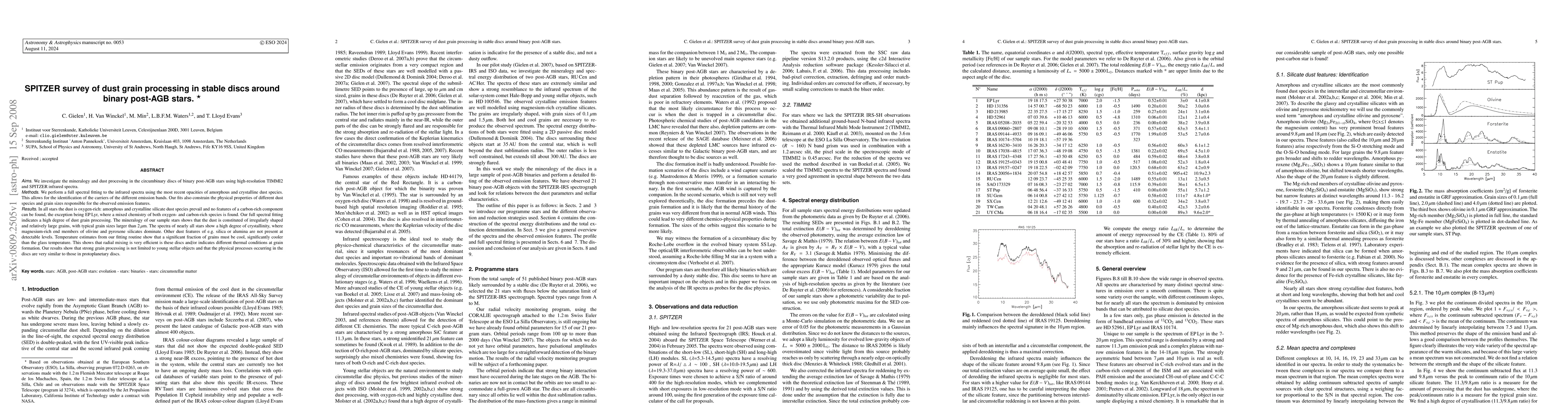 The Spitzer survey reveals that dust in circumbinary discs around binary post-AGB stars predominantly consists of oxygen-rich amorphous and crystalline silicates, with significant grain processing and high crystallinity, indicating efficient radial mixing and thermal conditions similar to those in protoplanetary discs.