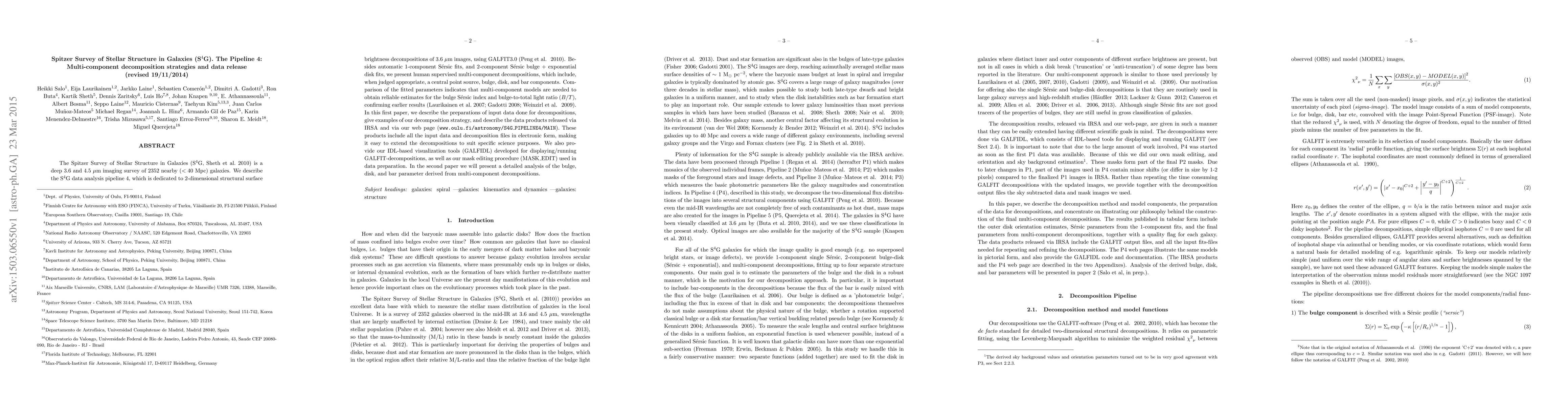 The Spitzer Survey of Stellar Structure in Galaxies (S$^4$G) pipeline 4 has been released, providing detailed structural surface brightness decompositions for 2352 nearby galaxies, confirming the need for multi-component models to accurately estimate bulge properties.