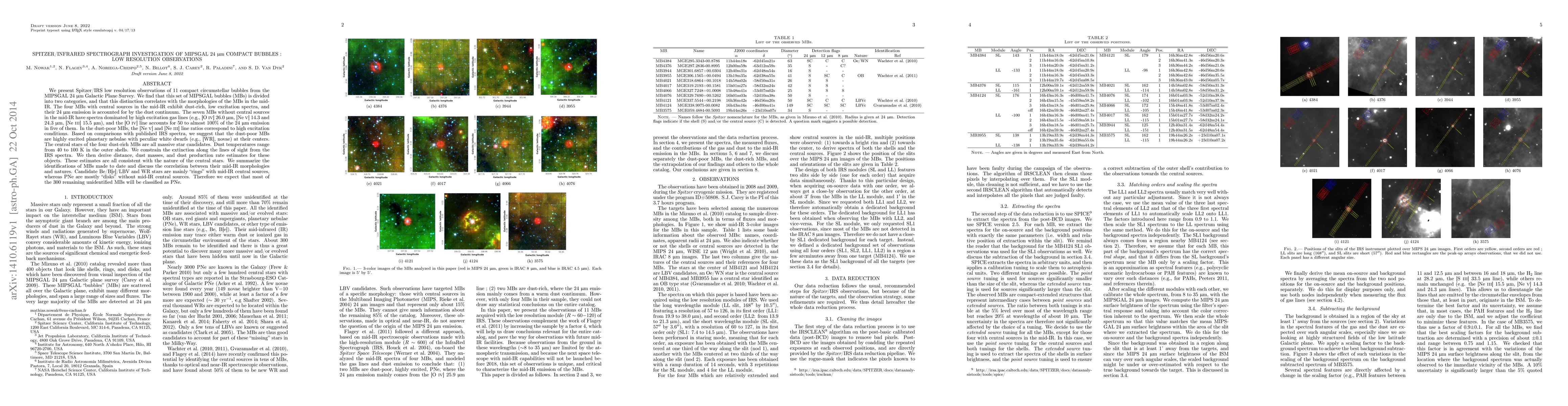 We present Spitzer/IRS low resolution observations of 11 compact circumstellar bubbles from the MIPSGAL 24 {\mu}m Galactic Plane Survey. We find that this set of MIPSGAL bubbles (MBs) is divided into two categories, and that this distinction correlates with the morphologies of the MBs in the mid- IR. The four MBs with central sources in the mid-IR exhibit dust-rich, low excitation spectra, and their 24 {\mu}m emission is accounted for by the dust continuum. The seven MBs without central sources in the mid-IR have spectra dominated by high excitation gas lines (e.g., [O IV] 26.0 {\mu}m, [Ne V] 14.3 and 24.3 {\mu}m, [Ne III] 15.5 {\mu}m), and the [O IV] line accounts for 50 to almost 100% of the 24 {\mu}m emission in five of them. In the dust-poor MBs, the [Ne V] and [Ne III] line ratios correspond to high excitation conditions. Based on comparisons with published IRS spectra, we suggest that the dust-poor MBs are highly excited planetary nebulae with peculiar white dwarfs (e.g., [WR], novae) at their centers. The central stars of the four dust-rich MBs are all massive star candidates. Dust temperatures range from 40 to 100 K in the outer shells. We constrain the extinction along the lines of sight from the IRS spectra. We then derive distance, dust masses, and dust production rate estimates for these objects. These estimates are all consistent with the nature of the central stars. We summarize the identifications of MBs made to date and discuss the correlation between their mid-IR morphologies and natures. Candidate Be/B[e]/LBV and WR stars are mainly "rings" with mid-IR central sources, whereas PNe are mostly "disks" without mid-IR central sources. Therefore we expect that most of the 300 remaining unidentified MBs will be classified as PNe.