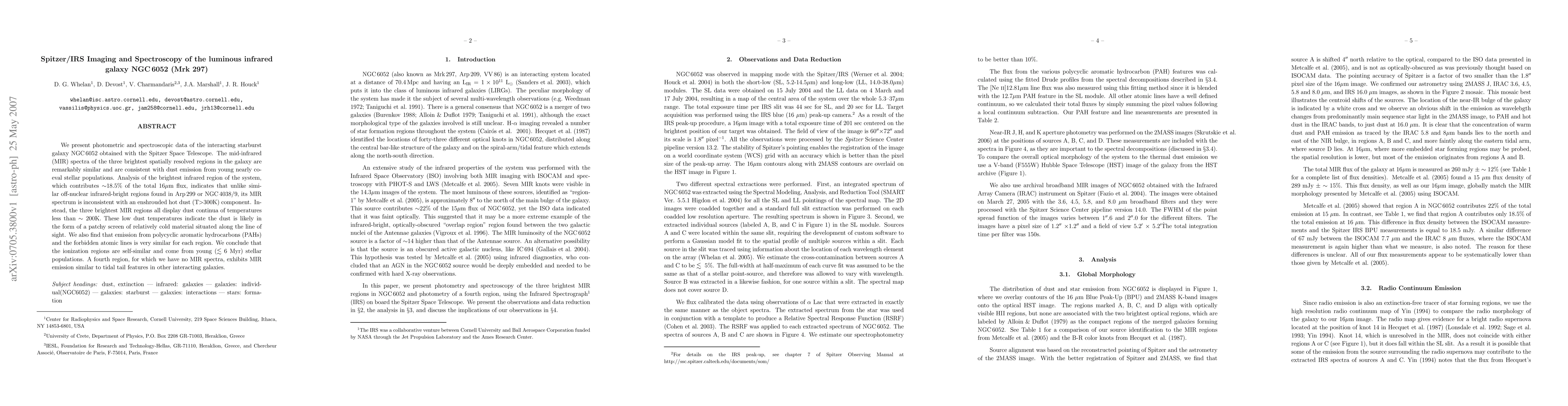 We present photometric and spectroscopic data of the interacting starburst galaxy NGC 6052 obtained with the Spitzer Space Telescope. The mid-infrared (MIR) spectra of the three brightest spatially resolved regions in the galaxy are remarkably similar and are consistent with dust emission from young nearly coeval stellar populations. Analysis of the brightest infrared region of the system, which contributes ~18.5 % of the total 16\micron flux, indicates that unlike similar off-nuclear infrared-bright regions found in Arp 299 or NGC 4038/9, its MIR spectrum is inconsistent with an enshrouded hot dust (T > 300K) component. Instead, the three brightest MIR regions all display dust continua of temperatures less than ~ 200K. These low dust temperatures indicate the dust is likely in the form of a patchy screen of relatively cold material situated along the line of sight. We also find that emission from polycyclic aromatic hydrocarbons (PAHs) and the forbidden atomic lines is very similar for each region. We conclude that the ionization regions are self-similar and come from young (about 6 Myr) stellar populations. A fourth region, for which we have no MIR spectra, exhibits MIR emission similar to tidal tail features in other interacting galaxies.