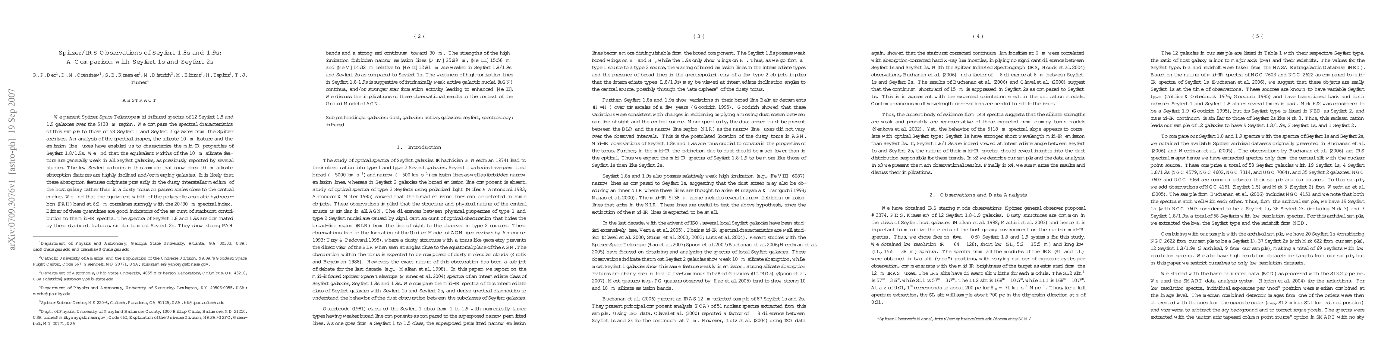 This study compares mid-infrared spectra of Seyfert 1.8/1.9 galaxies with those of Seyfert 1 and 2 galaxies, revealing weak silicate features, strong starburst indicators, and weaker high-ionization emission lines, suggesting intrinsically weak AGN continua or stronger star formation activity.
