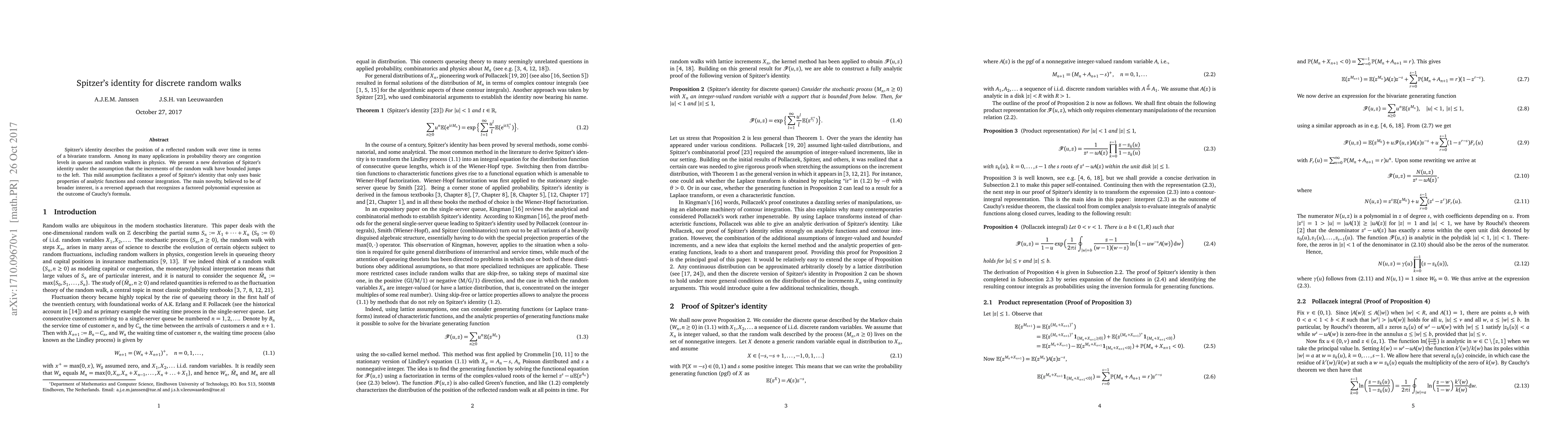 Spitzer's identity describes the position of a reflected random walk over time in terms of a bivariate transform. Among its many applications in probability theory are congestion levels in queues and random walkers in physics. We present a new derivation of Spitzer's identity under the assumption that the increments of the random walk have bounded jumps to the left. This mild assumption facilitates a proof of Spitzer's identity that only uses basic properties of analytic functions and contour integration. The main novelty, believed to be of broader interest, is a reversed approach that recognizes a factored polynomial expression as the outcome of Cauchy's formula.