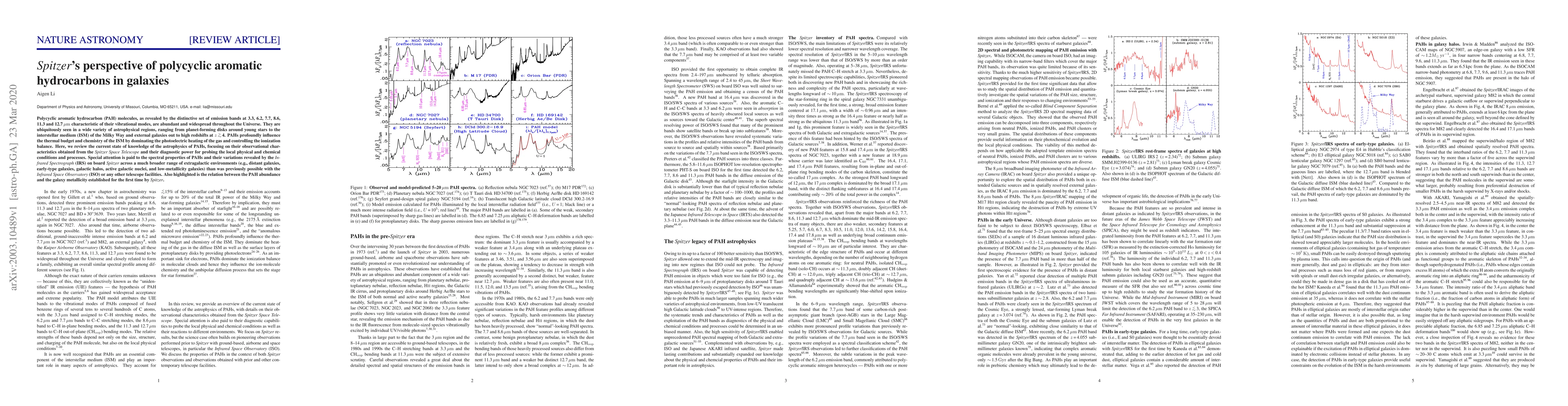 Polycyclic aromatic hydrocarbon (PAH) molecules, as revealed by the distinctive set of emission bands at 3.3, 6.2, 7.7, 8.6, 11.3 and 12.7 $\mu$m characteristic of their vibrational modes, are abundant and widespread throughout the Universe. They are ubiquitously seen in a wide variety of astrophysical regions, ranging from planet-forming disks around young stars to the interstellar medium (ISM) of the Milky Way and external galaxies out to high redshifts at z>4. PAHs profoundly influence the thermal budget and chemistry of the ISM by dominating the photoelectric heating of the gas and controlling the ionization balance. Here, we review the current state of knowledge of the astrophysics of PAHs, focusing on their observational characteristics obtained from the Spitzer Space Telescope and their diagnostic power for probing the local physical and chemical conditions and processes. Special attention is paid to the spectral properties of PAHs and their variations revealed by the Infrared Spectrograph (IRS) on board Spitzer across a much broader range of extragalactic environments (e.g., distant galaxies, early-type galaxies, galactic halos, active galactic nuclei, and low-metallicity galaxies) than was previously possible with the Infrared Space Observatory (ISO) or any other telescope facilities. Also highlighted is the relation between the PAH abundance and the galaxy metallicity established for the first time by Spitzer.